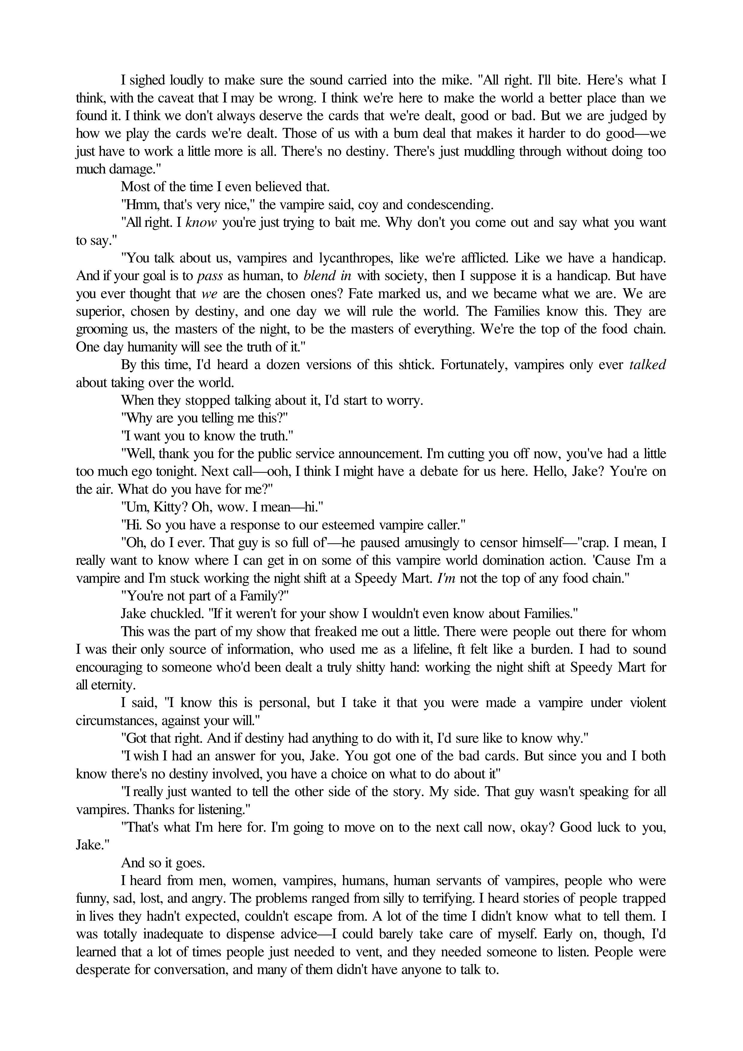 "Carrie Vaughn - Kitty Norville 04 - Kitty and the Silver Bullet" - читать интересную книгу автора (Vaughn Carrie) |