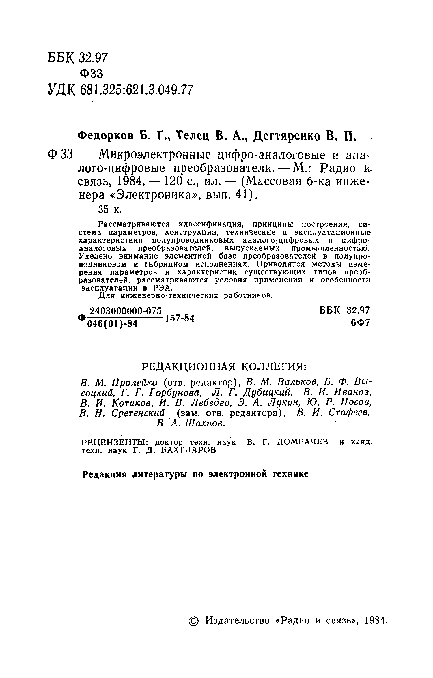"Б.Г.Федорков, В.А.Телец. Микроэлектронные цифро-аналоговые и аналого-цифровые преобразователи (djvu) " - читать интересную книгу автора |