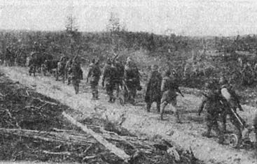 Пехота на марше. Впереди движется 45-миллиметровое орудие. Ночью пошли на марш. Ребятам я разрешал идти по сухой обочине, а сам, как уже говорил, шел за орудием. Пойми, мне было восемнадцать, я был самым молодым командиром взвода, а управлять приходилось людьми и в два раза меня старше. Все, что происходит во взводе, все зависит от командира взвода. Надо себя так поставить, чтобы солдаты знали, что ты за хорошее похвалишь, за плохое взыщешь, что ты не поощряешь доносы и не любишь "сачков". Взвод надо было беречь, следить, чтобы личный состав всегда был сыт, чтобы всегда были снаряды и корм для лошадей. Надо правильно занять огневые позиции. На каждой остановке я заставлял выверять орудия, поэтому мы и стреляли хорошо. Все зависит от командира взвода! Был такой случай, когда я своему другу, Ване Фролову, как раз перед форсированием Днепра прострелил ногу. Получилось так, что меня вызвал к себе командир батальона. Надо сказать, комбат, Иван Аникеевич Звездин, был очень толковый мужик. Ходил слух, что он бывший полковник, разжалованный за амурные дела, потому что так командовать, так распоряжаться, пользоваться таким авторитетом, по нашему мнению, мог только полковник. На самом деле образования у него было всего 8 классов и курсы младших лейтенантов, но зато он имел опыт боев на Хасане и Финской, что, видимо, и позволяло ему грамотно управлять батальоном. Так вот я ушел, когда ребята начали готовить ужин. Возвращался я от него, когда батальон уже выходил на марш. Я подошел к нашей палатке. Мои бойцы сидят внутри, а перед ними на рогатинах висит эмалированное ведро, в котором варился борщ, распространяя сумасшедший запах. Я им крикнул: "Вы почему не собрались?" "Командир, что ты шумишь? Садись, поешь. Смотри, какой борщ мы сварили!" Вот тут я психанул. Выхватил пистолет и выстрелил в этот борщ, решив продырявить ведро и показать, что дисциплина важнее. Получилось так, что пуля рикошетом попала Ивану в икру. Слава богу, кость была не задета, а ребята согласились дело замять, но я его еще несколько дней на пушке возил, поскольку ходить он не мог. Так вот среди ночи по колонне разнеслось: "Командир полка, командир полка". Обернулся, справа за деревьями вижу два всадника на лошадях. Потом они куда-то исчезли. Дошли до привала. Дорога поворачивала над обрывом влево, образуя сухой выступ, на котором мы поставили пушку. Я спросил, что на ужин - перловая каша, а я ее и в мирное-то время не ел. "Все! - говорю. Ребята, я сплю". Бросил на землю плащ-палатку, лег и тут же уснул. Вдруг слышу: "Встать, командир полка!" Я слышу, понимаю, что надо встать, но не могу. У меня нет сил встать. Вдруг я слышу: "Я командир полка". Я говорю: "Да пошел ты на...!" И с этими словами открыл глаза. Вижу - действительно стоит ординарец командира полка и сам командир, который пытается откинуть полу плащ-палатки, чтобы достать пистолет. Когда я это увидел, я потянулся и взял автомат, лежавший рядом. Он все понял, повернулся, и они ускакали. Ребята говорят: "Что ты наделал?" - "А что? Я же не знал, что это командир полка, думал вы разыгрываете". Марш продолжился. Под утро мы остановились у какой-то деревни. День выдался солнечным, мы развесили свое барахло подсушиться. Среди дня появились два подтянутых сержанта: "Кто Ульянов?" "Я". - "Назови себя". - "Сержант Ульянов". - "Собирайся, пойдем". - "Что брать?" - "А что хочешь, можешь ничего 