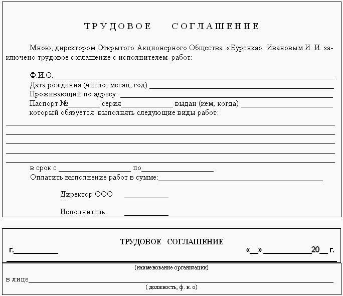 Ниже приводятся образцы трудового соглашения (рис. 1).