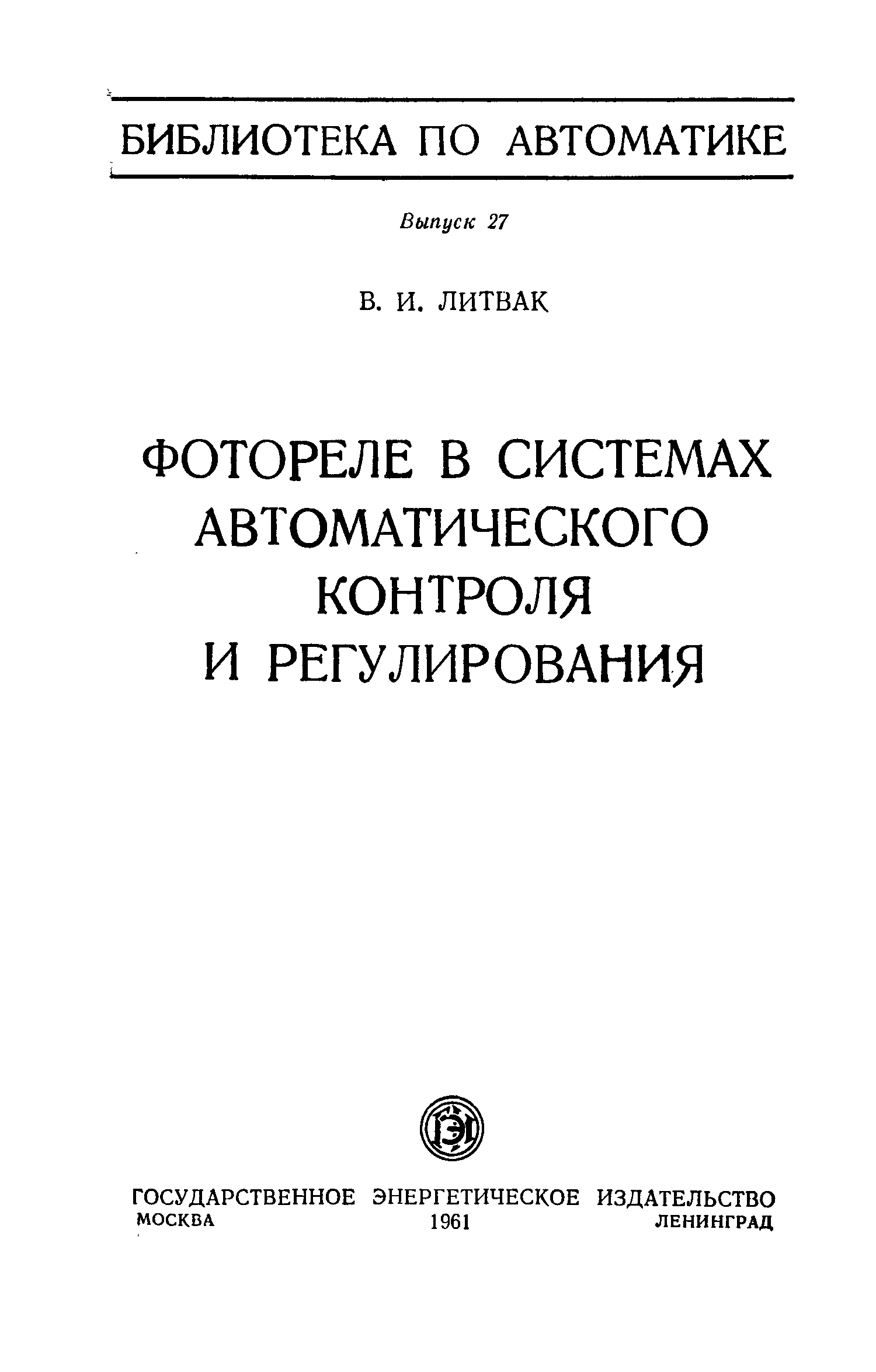 "В.И.Литвак. Фотореле в системах автоматического контроля и регулирования ("Библиотека по автоматике" #27) " - читать интересную книгу автора |
