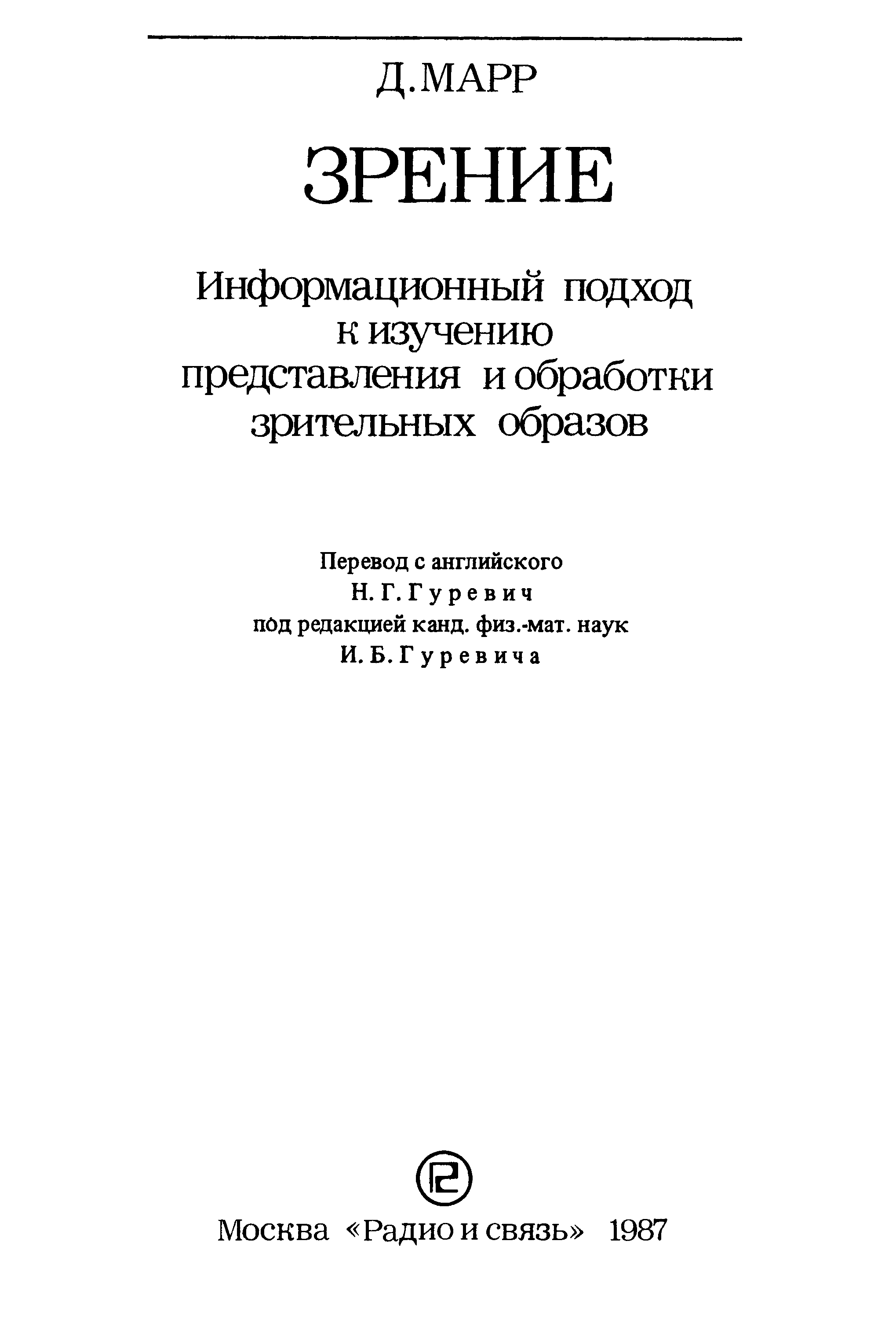 "Д.Марр. Зрение: Информационный подход (djvu) " - читать интересную книгу автора