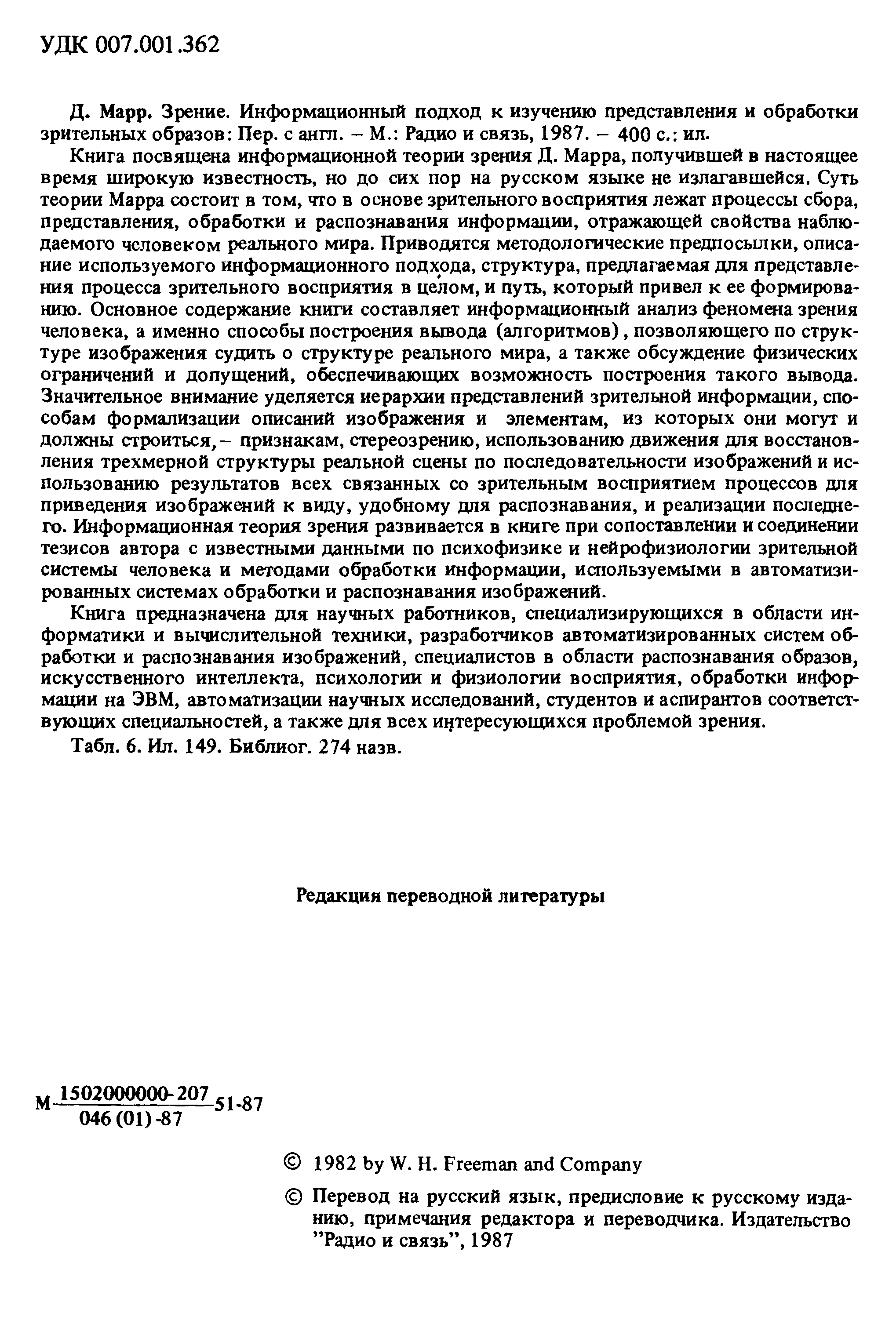 "Д.Марр. Зрение: Информационный подход (djvu) " - читать интересную книгу автора