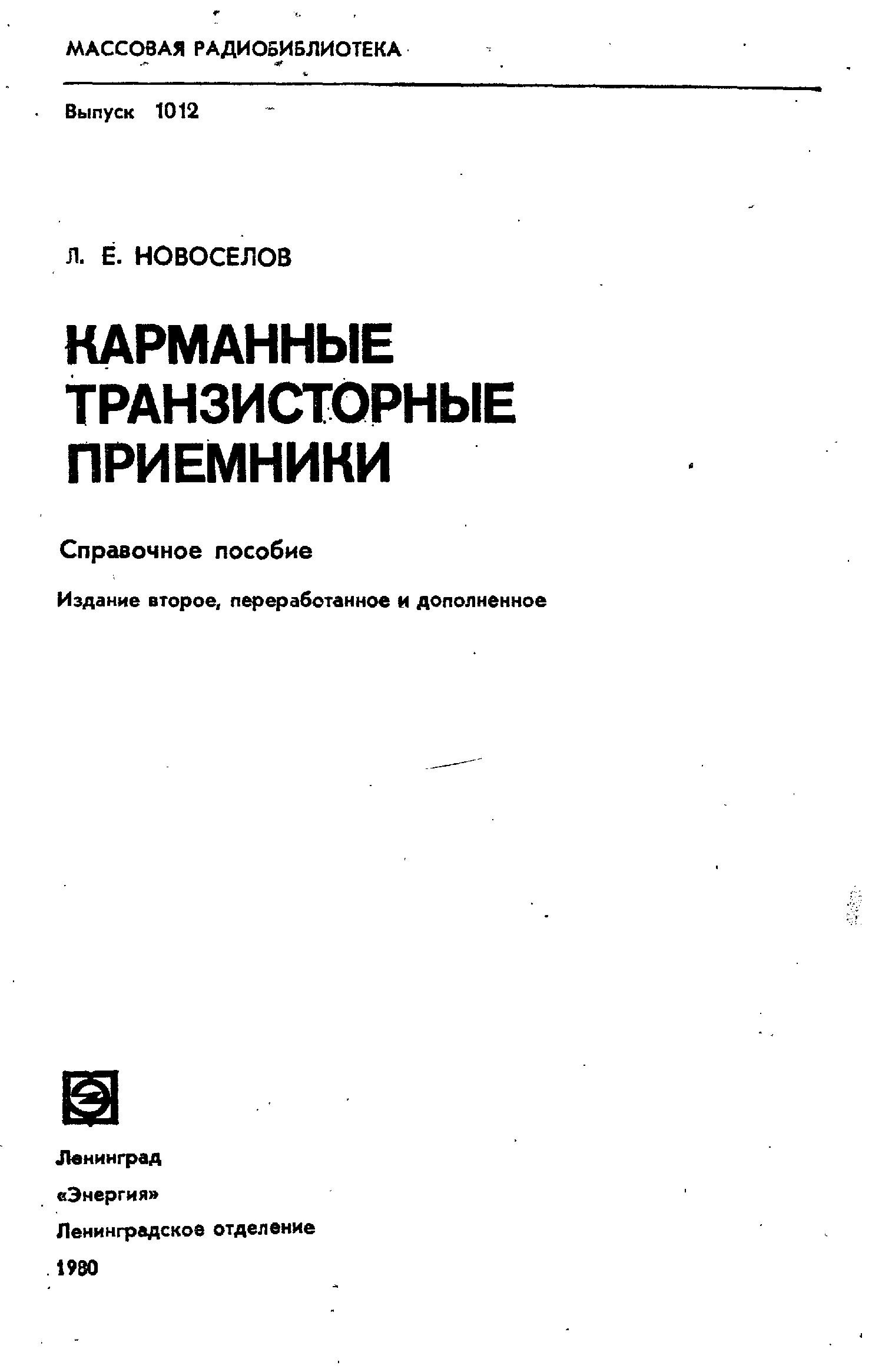 "Л.Е.Новоселов. Карманные транзисторные приемники (МРБ-1012, 1980, djvu) " - читать интересную книгу автора |