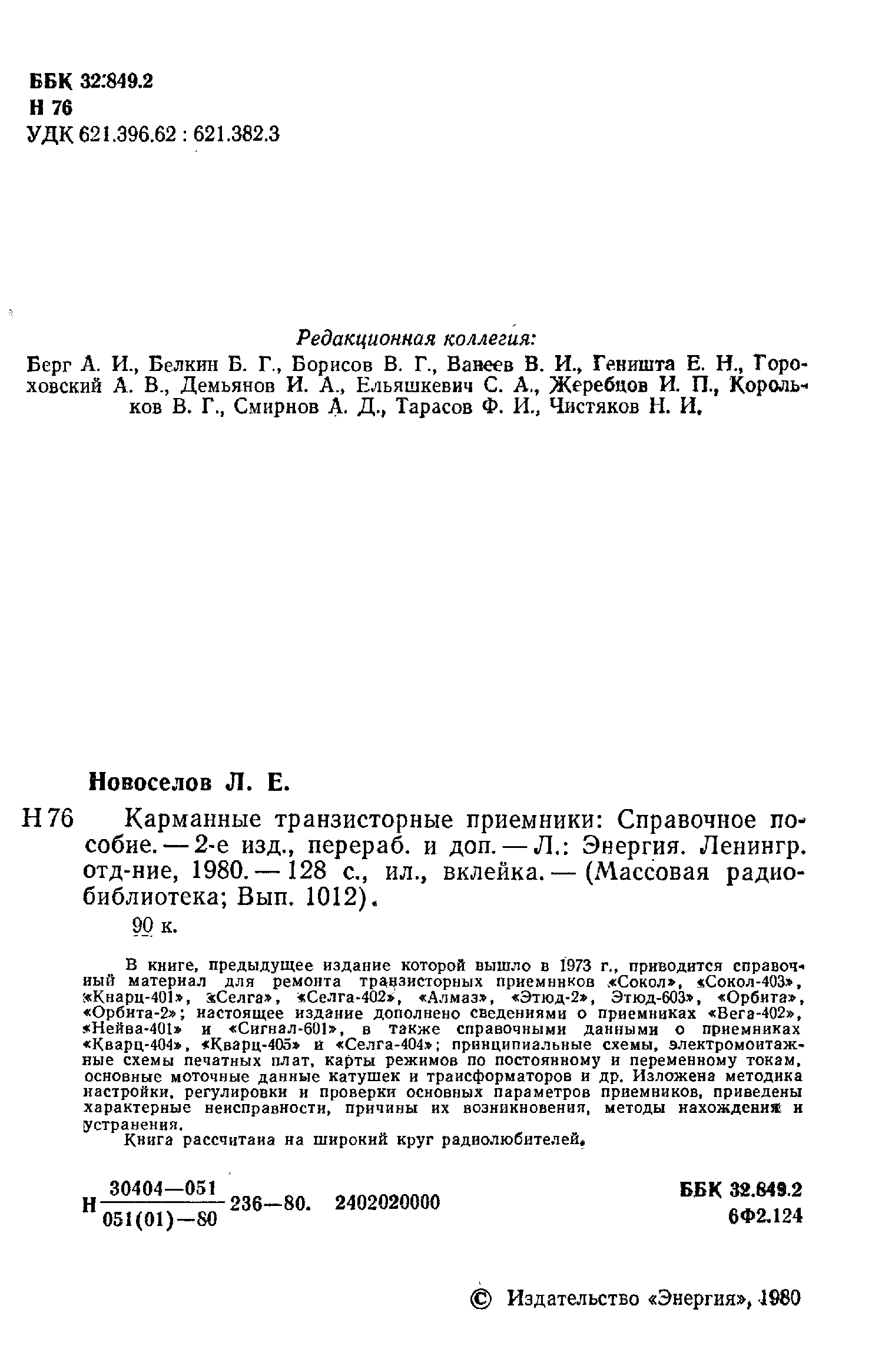 "Л.Е.Новоселов. Карманные транзисторные приемники (МРБ-1012, 1980, djvu) " - читать интересную книгу автора |