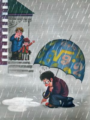 "Стол находок утерянных чисел" - читать интересную книгу автора (Александрова Эмилия Борисовна, Левшин...)КАК ЭТО НАЧАЛОСЬВ тот день с утра зарядил дождь. Да, представьте себе, в воображаемом Энэмске бывают ничуть не воображаемые дожди. Уверяю вас! Вообще то я против дождя ничего не имею. Дождь — это даже приятно. Особенно — если над тобой не каплет, если сидишь в уютной комнате у электрического камина и читаешь увлекательную приключенческую повесть. На сей раз в руках у меня тоже была приключенческая повесть, но читал я её крайне невнимательно, то и дело поглядывал на заплаканные окна и с огорчением думал, что по случаю ненастья ни девочки, ни щенка не увижу. Я ещё не знал, что жизнь уготовила мне приключение поинтереснее напечатанного и что сам я тоже напишу о нём повесть — ту, что лежит перед вами. Впрочем, жизнь всегда интереснее вымысла. И надеюсь, скоро вы в этом убедитесь. Итак, я держал в руках книгу, и не читал её, и скучал по девочке со щенком, и думал, что сегодня они не придут. И вдруг — о радость! — послышалось знакомое «тук-тук» (девочка всегда стучала дважды, не иначе как из солидарности со щенком, который всегда дважды тявкал), и в комнате появились они, отсыревшие, но весёлые, как весенние зяблики. Если только собака из породы скоч-терьеров может походить на зяблика. Грусти моей как не бывало! Я вскочил, я отшвырнул книгу, я усадил дорогих гостей в самое моё лучшее кресло у камина и снял с девочки башмаки, чтобы она могла просушить свои маленькие ножки. И все мы, несмотря на разницу в возрасте, дурачились и хохотали вовсю. Я говорю «все», потому что Пуся хоть и щенок, а тоже умеет хохотать. Уверяю вас! А уж дурачится он так, что ему ни один человек в подмётки не годится. Потом я включил кофеварку, но тут девочка вздохнула, посмотрела на меня очень серьёзными глазами и сказала: — Смешно! Я оглядел комнату, тщетно пытаясь обнаружить хоть что-нибудь смешное, и сказал, что ничего не понимаю. — Сейчас поймёте, — пообещала девочка. И тут она рассказала вот что. В доме у неё живёт один чудак. Он очень забывчивый и вечно чтонибудь теряет. Поэтому она окрестила его Главным терятелем. Так вот, не далее чем вчера у него пропал лотерейный билет. — Смешно! — в свою очередь сказал я. — У человека пропажа. Чему же тут радоваться? — А тому, что вы эту пропажу найдёте, — пояснила девочка. Я поблагодарил её за доверие и напомнил, что пропавших билетов не разыскиваю. Но она заявила, что этого и не требуется. Моё дело — восстановить номер билета, а уж по этому номеру и самый билет восстановят. — Это, конечно, меняет дело, — сказал я, поразмыслив. — Номер — то же число. А розыск чисел — моё призвание. — Вот и прекрасно! — обрадовалась девочка. — Значит, вы согласны с ним познакомиться? Я отвечал, что, разумеется, согласен, но когда? Сегодня, пожалуй, не выйдет, завтра — суббота, послезавтра — воскресенье, дни нерабочие. Разве что в понедельник… — Смешно! — возмущённо фыркнула девочка. — Неужели вы хотите, чтобы он ждал вас под дождём трое суток? На сей раз это было действительно смешно, и я расхохотался. Так вот в чём дело! Зная мою покладистость, плутовка привела своего Главного терятеля без всякого разрешения, и, конечно же, не ошиблась. Не такой я человек, чтобы заставить кого-нибудь мокнуть под дождём, да ещё так долго! Я подошел к двери, распахнул её как можно шире и 