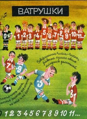 "Стол находок утерянных чисел" - читать интересную книгу автора (Александрова Эмилия Борисовна, Левшин...)ФУТБОЛ ПО-ЭНЭМСКИУвлечённые беседой о нуле, мы не замечали дороги — просто шли за Пусей, привычно полагаясь на его высокий сыскной авторитет, и опомнились лишь у кассы стадиона Юных пенсионеров. Здесь было многолюдно. Любители футбола с азартом расхватывали билеты на матч между командами «Ватрушек» и «Коржиков». Нам тоже досталось по билетику — всем, кроме Пуси. Вот незадача! Сперва его обошли печеньем, теперь — билетом… Что прикажете делать щенку, которого не считают за человека? Только одно: проскочить зайцем. Так он и поступил, и скоро мы сидели на трибуне, ожидая начала игры. Вы уже знаете: в Энэмске очень любят математику. Оттого всё здесь с математическим уклоном. Даже футбол. Перед матчем команды выстраиваются не друг против друга, а в одну линию. Одна команда — по порядку номеров вправо, другая — по порядку номеров влево. Причём у игроков справа числа на майках с плюсами, то есть положительные, а у игроков слева — с минусами: отрицательные. В центре между двумя единицами стоит судья. В руках у него мяч, а на майке — нуль. Не подумайте только, что это намёк! Никому из энэмчан не придёт в голову, что судья в матче — пустое место. Просто всё это, вместе взятое, символизирует бесконечную числовую прямую. И вот почему на майках у крайних игроков рядом с номером 11 стоит многоточие — в знак того, что числам нет конца. До начала матча оставалось минут десять, и я вдруг подумал, что здешний стадион — самое подходящее место для беседы о числах, об их разновидностях и свойствах. Здесь можно было напомнить девочке то, что она уже успела узнать, и рассказать о том, чего она узнать не успела. В общем, как говорят в школе, закрепить пройденное и двинуться дальше. Как истая энэмчанка, девочка давно знала, что числовая прямая бесконечна. Но вот знала ли она, какое место занимает в ней нуль? И для чего числа разделяются на положительные и отрицательные? Я уж хотел справиться у неё об этом, но тут на зелёное поле высыпали «ватрушки» и «коржики», построились в свою положительно-отрицательную шеренгу, и девочка сама попросила меня о том же. Надо отдать ей должное: она очень быстро поняла, что положительные числа не потому положительны, что хороши, а отрицательные не потому отрицательны, что плохи. Просто положительные числа больше нуля, а отрицательные меньше. И вот почему они располагаются по обе его стороны, в то время как сам он ни к положительным, ни к отрицательным не относится. Он — ничейный. Нейтральная зона. Пограничный пост. Словом, нуль в своём репертуаре. Хотя он и относится к целым числам. Вначале, правда, девочку слегка озадачило, как это число может быть меньше нуля. Ведь нуль — ничто! Как говорится, меньше некуда. Но мне удалось объяснить, каким образом в математике получают целые числа меньше нуля. Их получают из натуральных, то есть природных, естественных чисел, но… искусственным путём: вычитая из меньшего натурального числа большее. К примеру, если из пяти вычесть семь, получится число на две единицы меньше нуля: (+5) — (+7) = (—2). — Фокус-покус, — засмеялась девочка. — Было два положительных числа, а стало одно отрицательное. — Это что! — сказал я. — С числами и не такие фокусы происходят. Так, перемножив два отрицательных числа, непременно пол