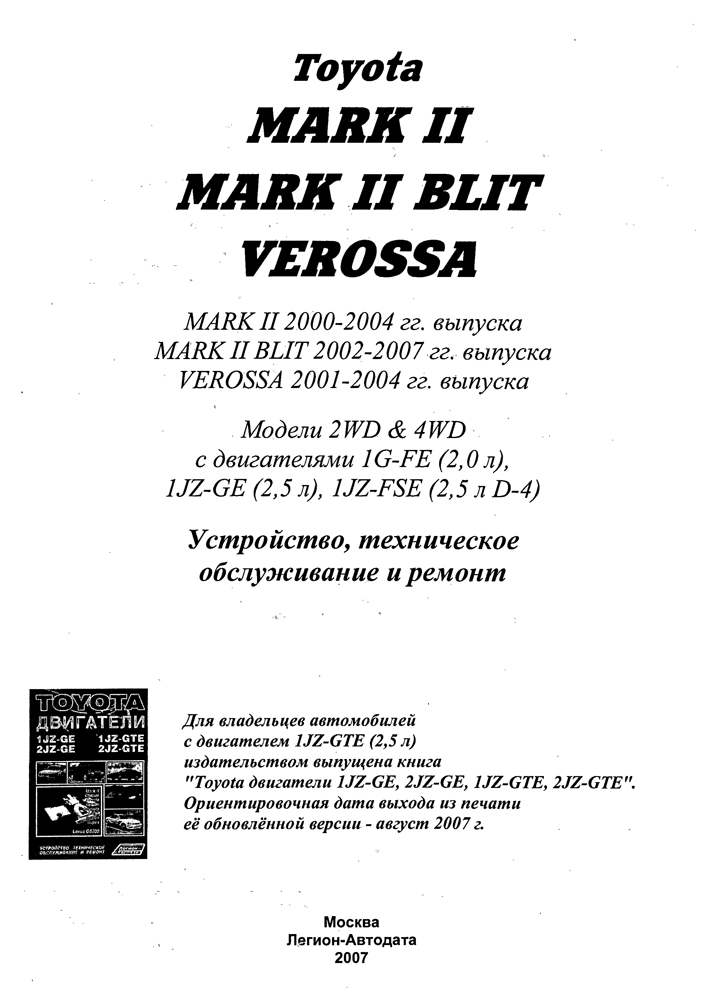 "Toyota: Mark II 2000-2004 & Mark II Blit 2002-2007 & Verossa 2001-2004 (djvu) " - читать интересную книгу автора |