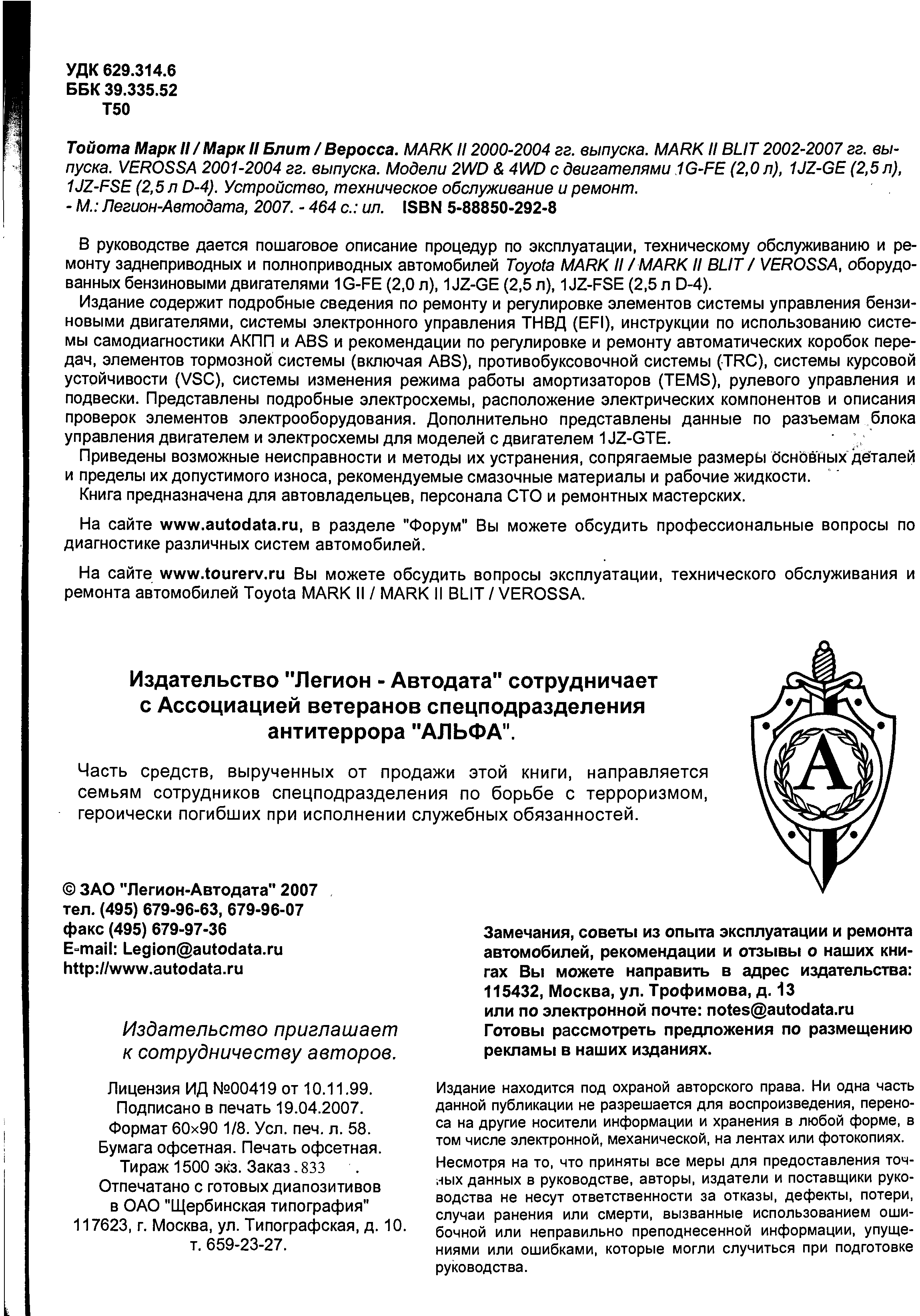 "Toyota: Mark II 2000-2004 & Mark II Blit 2002-2007 & Verossa 2001-2004 (djvu) " - читать интересную книгу автора |
