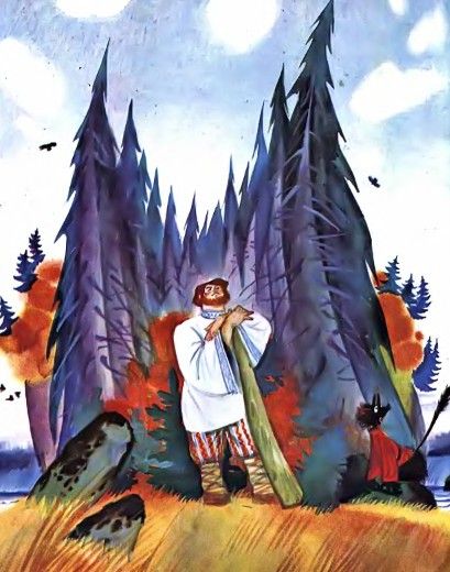 Слушай: платить обязались чертиМне оброк но самой моей смерти;Лучшего б не надобно дохода,Да есть на них недоимки за три года.Как наешься ты своей полбы,Собери-ка с чертей оброк мне полный».Балда, с попом понапрасну не споря,Пошел, сел у берега моря;Там он стал веревку крутитьДа конец ее в море мочить.Вот из моря вылез старый Бес:«Зачем ты. Балда, к нам залез?»
