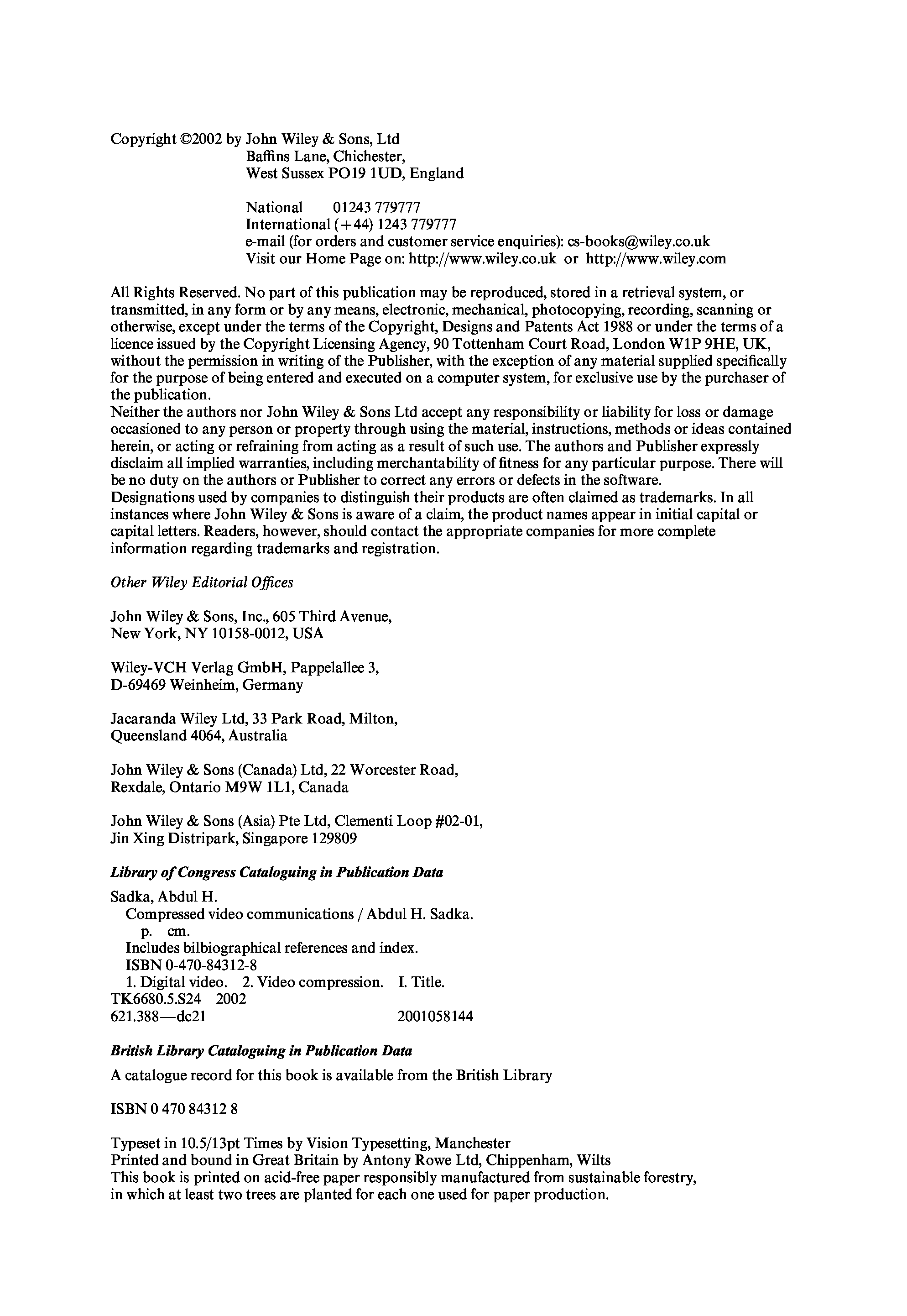 "Compressed video communications" - читать интересную книгу автора (Abdul H. Sadka)