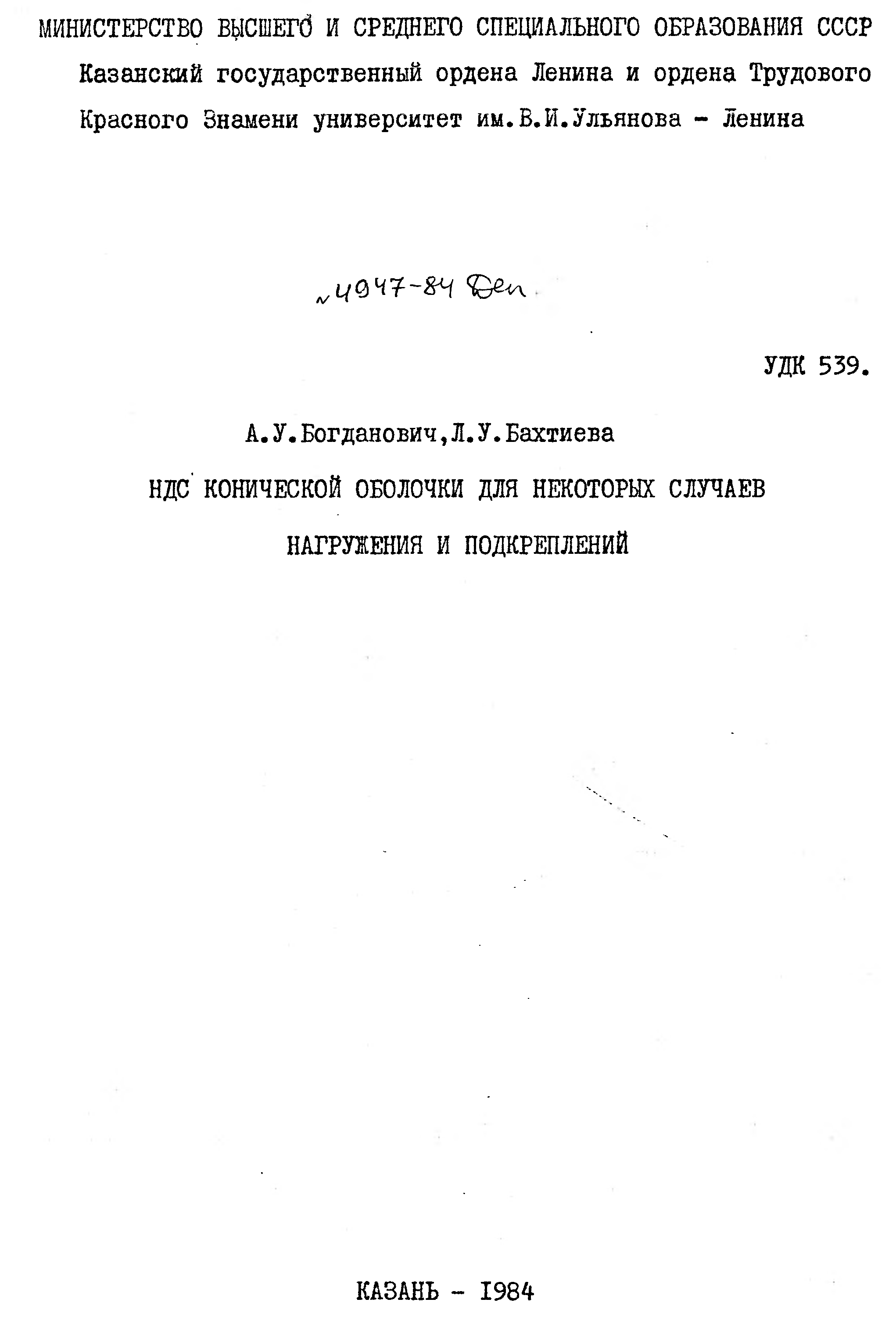 "НДС конической оболочки для некоторых случаев нагружения и подкреплений" - читать интересную книгу автора (Богданович, Бахтиева.) |