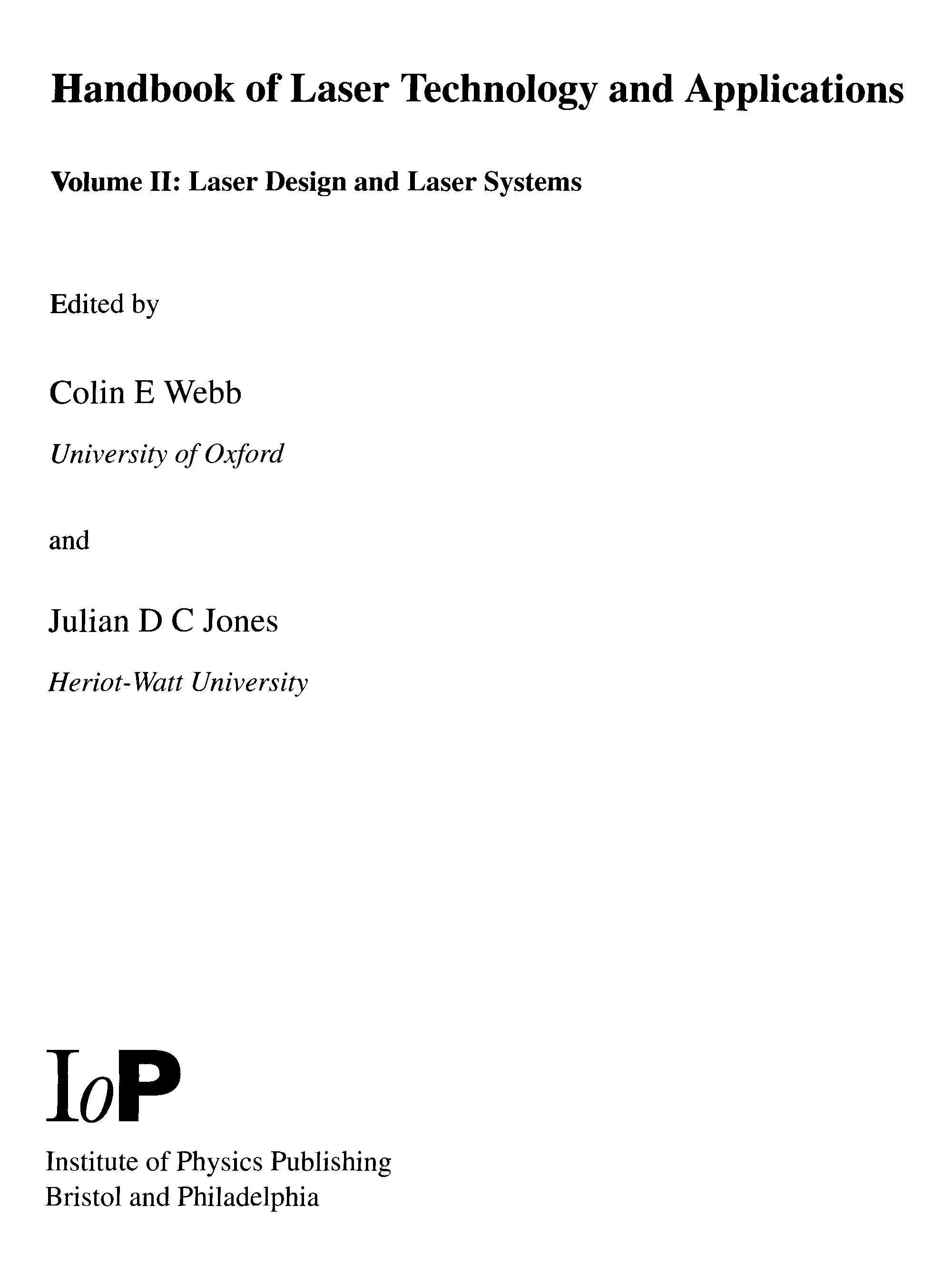"Handbook of Laser Technology and Applications: Laser Design and Systems" - читать интересную книгу автора (Colin E. Webb, Julian D. C. Jones) |