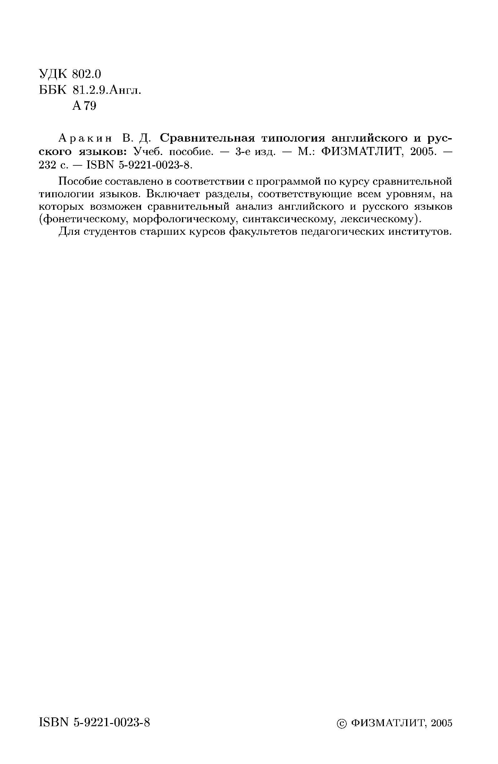 "Сравнительная типология английского и русского языков" - читать интересную книгу автора (В. Д. Аракин) |