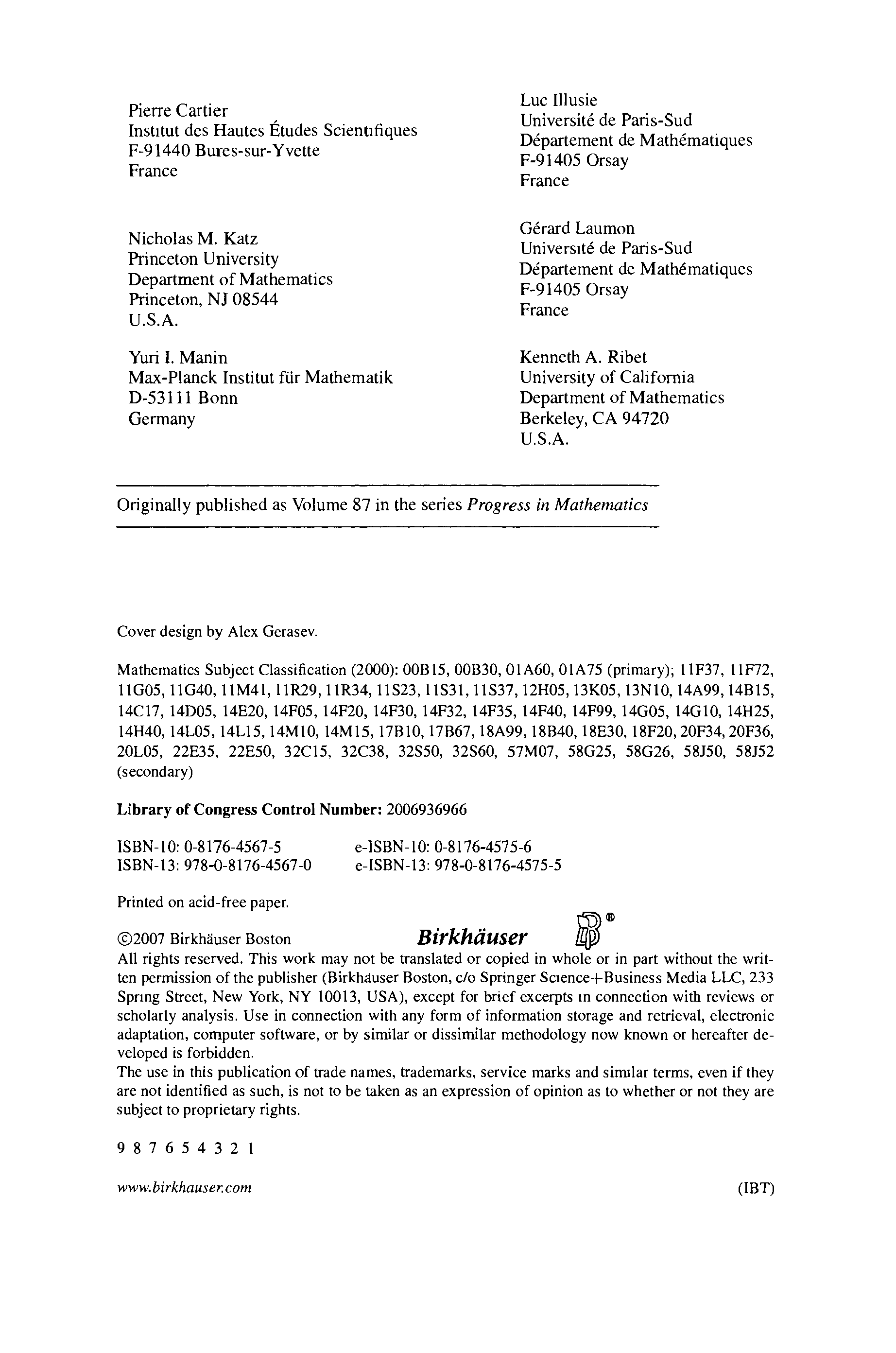 "The Grothendieck Festschrift" - читать интересную книгу автора (Pierre Cartier, Luc Illusie, Nicholas M. Katz, Gérard Laumon, Yuri I. Manin,...) |