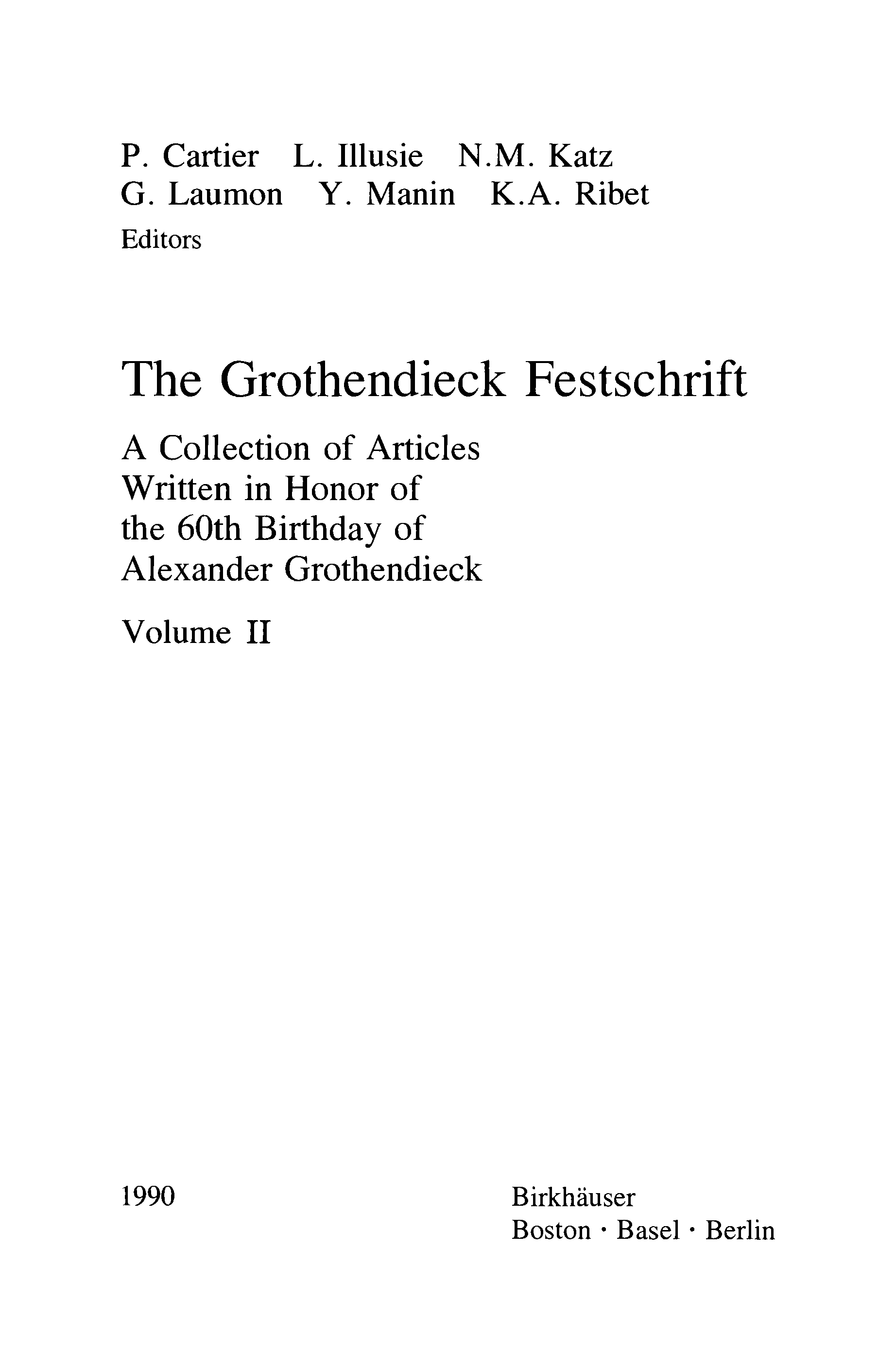 "The Grothendieck Festschrift" - читать интересную книгу автора (Pierre Cartier, Luc Illusie, Nicholas M. Katz, Gérard Laumon, Yuri I. Manin,...) |
