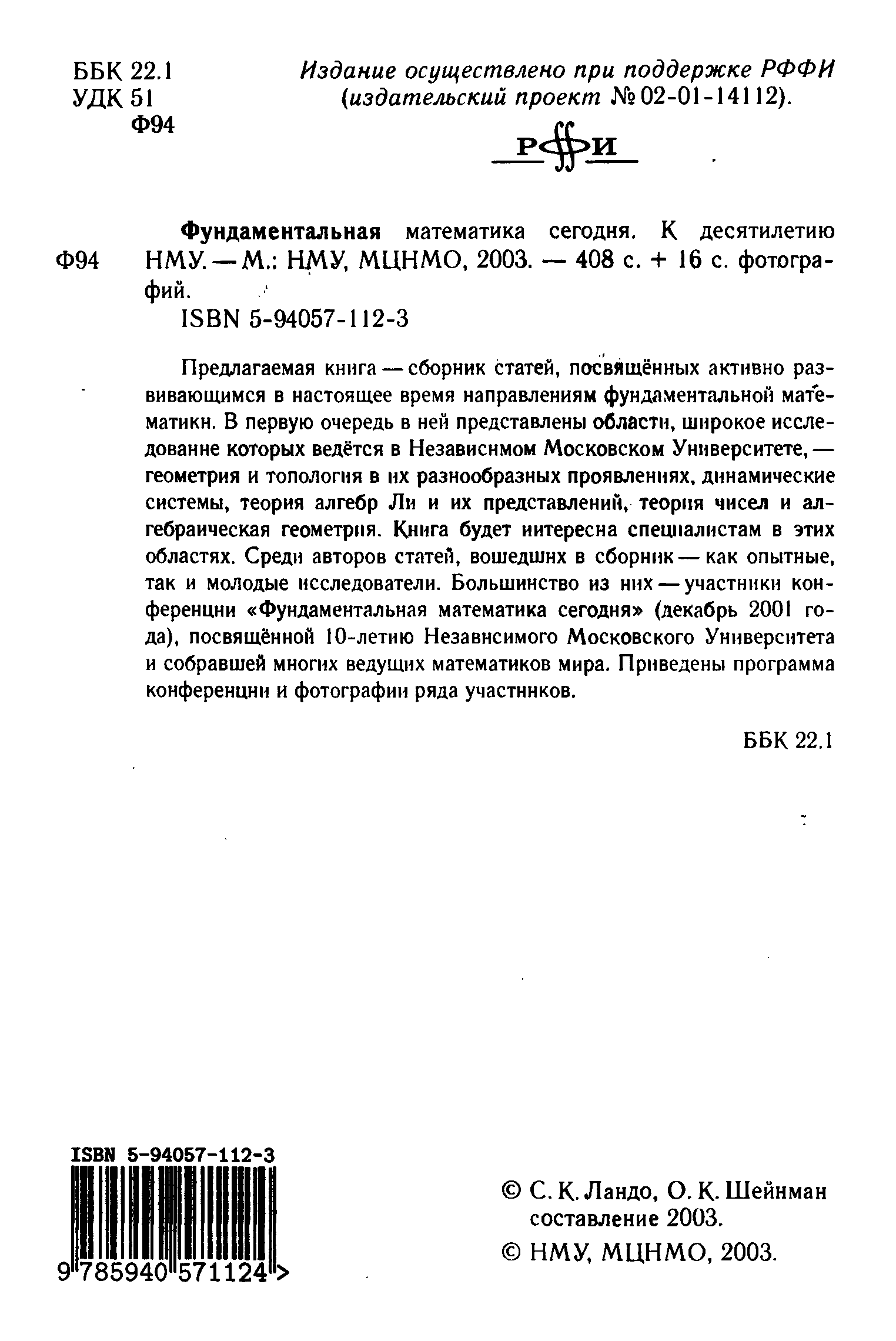 "Фундаментальная математика сегодня: 10 лет НМУ" - читать интересную книгу автора (Ландо, Шейнман. (ред.)) |