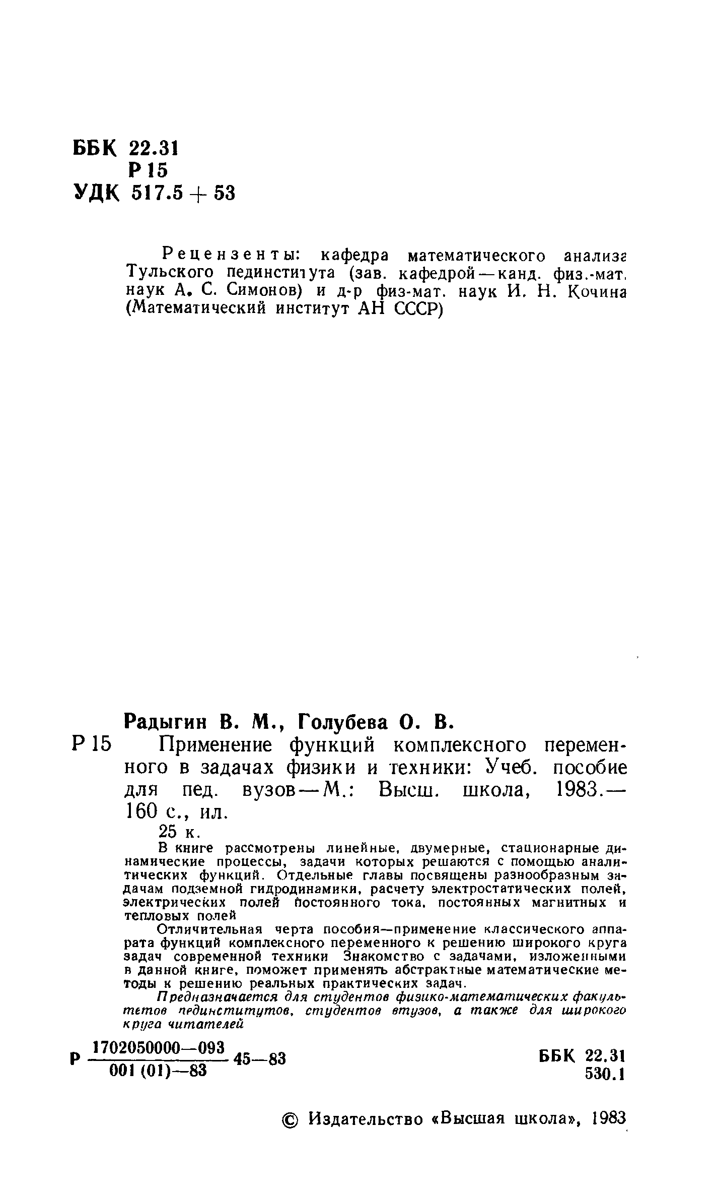 "Применение функций комплексного переменного в задачах физики и техники" - читать интересную книгу автора (Радыгин В.М., Голубева О.В.) |