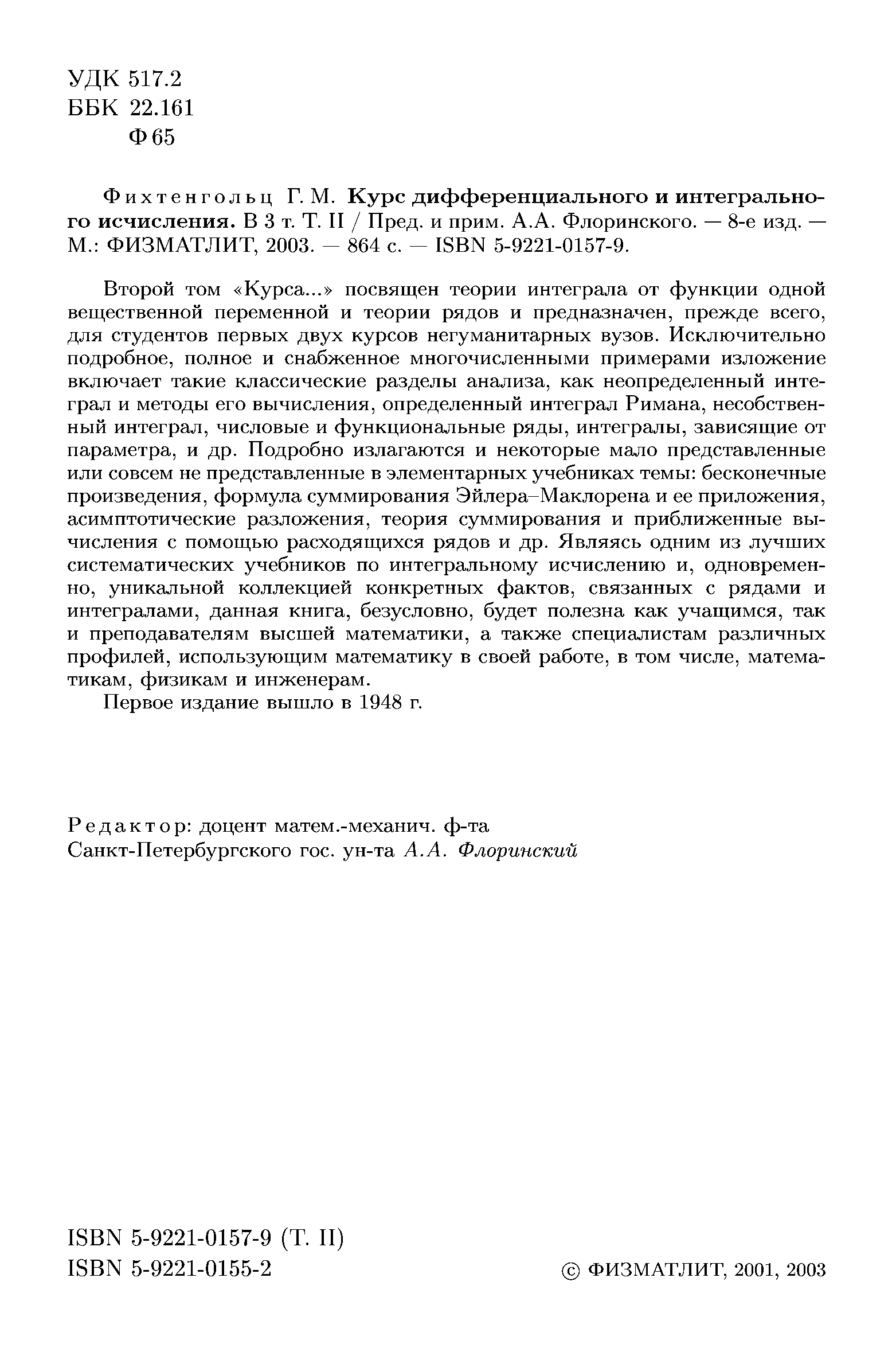 "Курс дифференциального и интегрального исчисления" - читать интересную книгу автора (Фихтенгольц Г.М.)