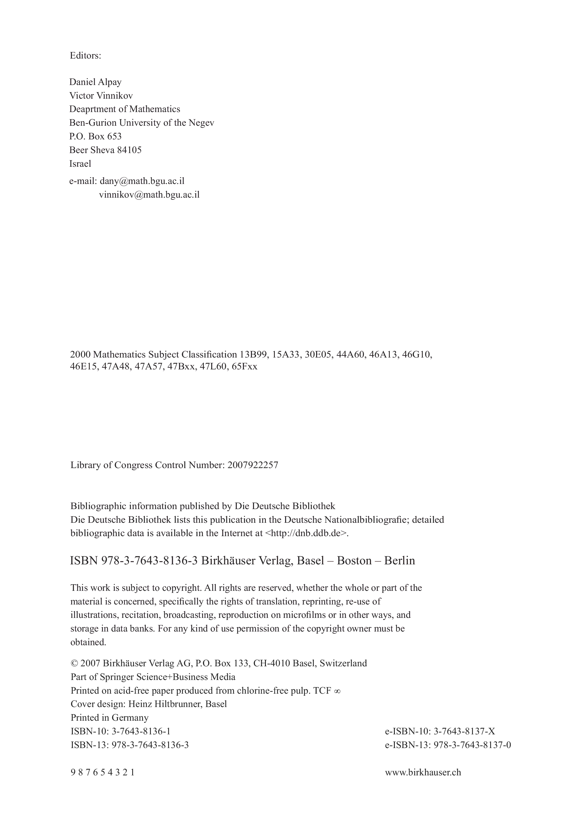 "System theory, the schur algorithm and multidimensional analysis" - читать интересную книгу автора (Daniel Alpay, Victor Vinnikov) |