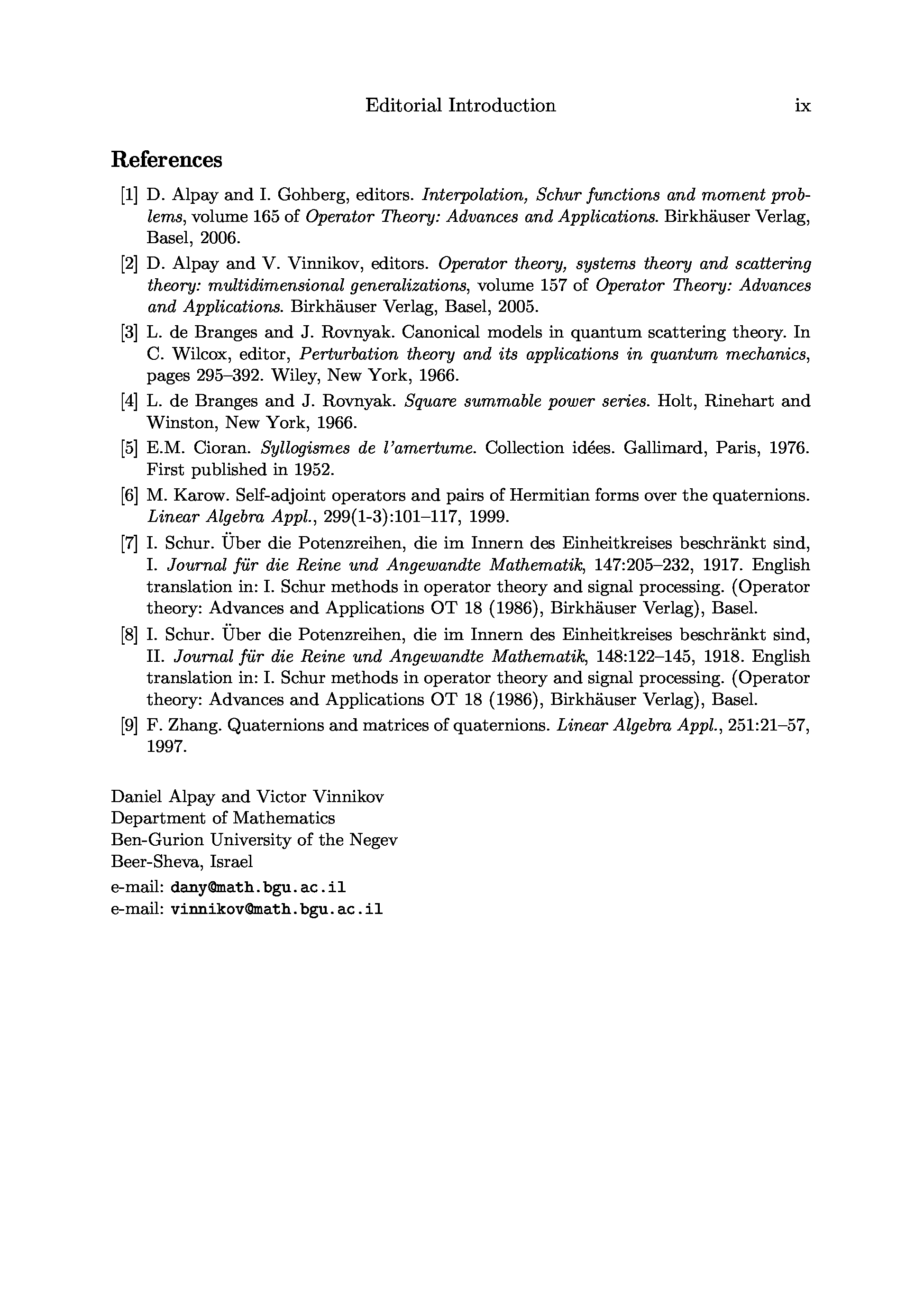 "System theory, the schur algorithm and multidimensional analysis" - читать интересную книгу автора (Daniel Alpay, Victor Vinnikov) |