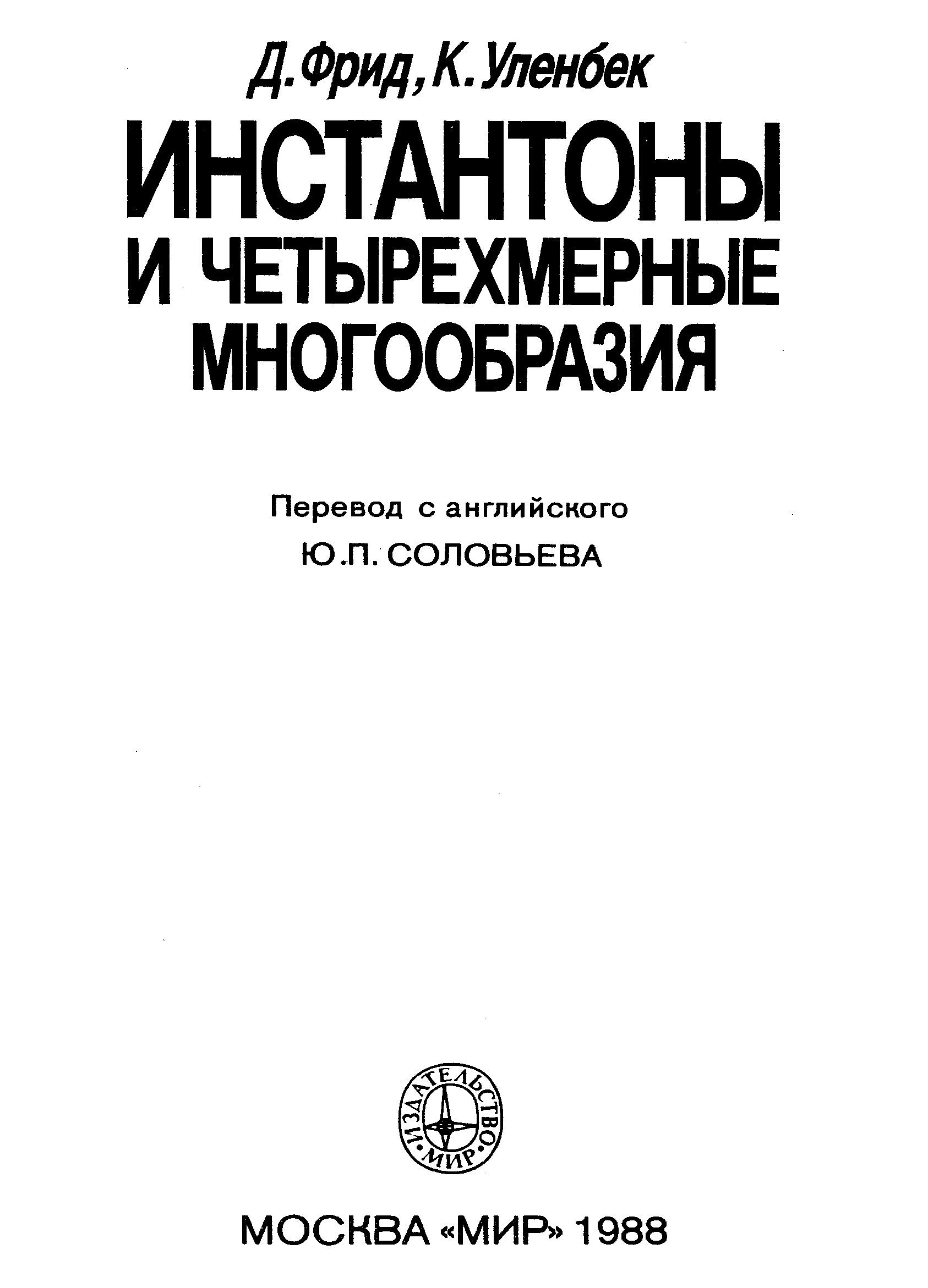 "Инстантоны и четырехмерные многообразия" - читать интересную книгу автора (Фрид Д., Уленбек К. (Freed,Uhlenbeck))