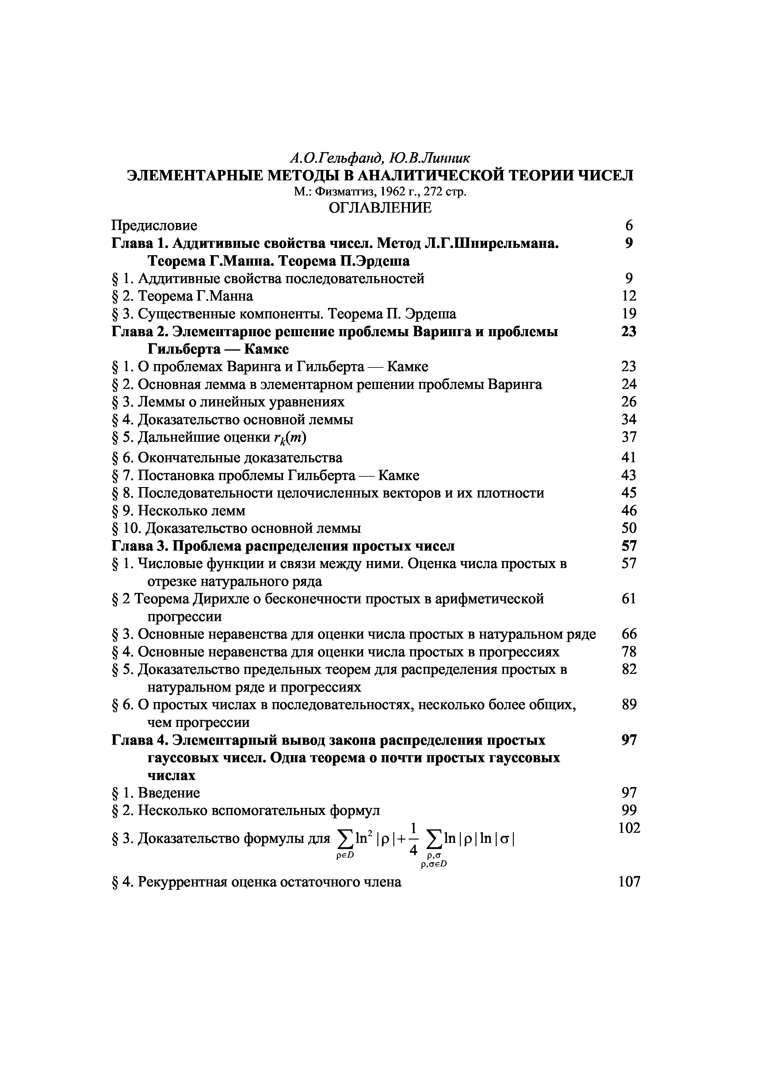 "Элементарные методы в аналитической теории чисел" - читать интересную книгу автора (Гельфонд А.О., Линник Ю.В.) |