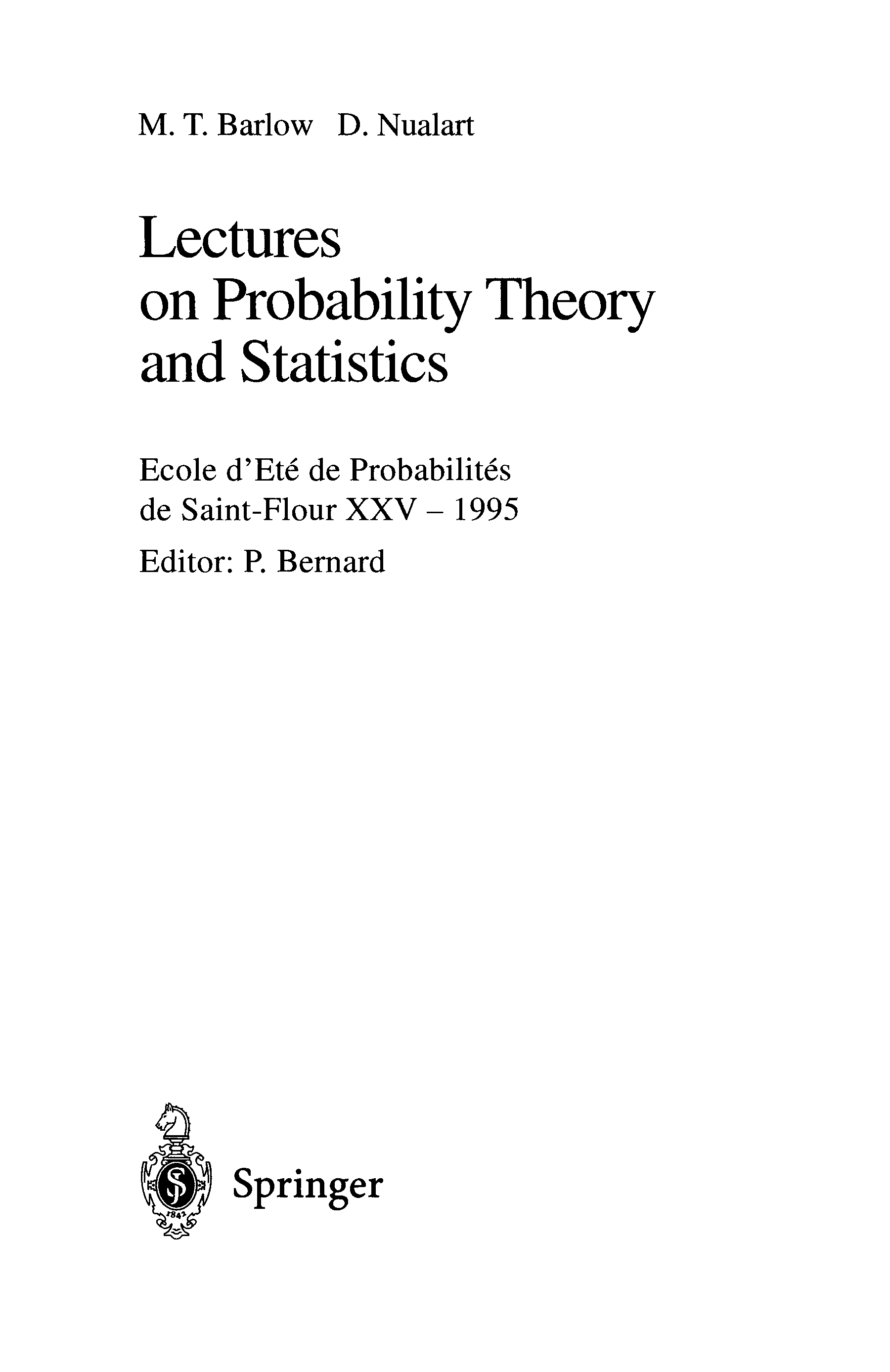 "Lectures on probability theory and statistics" - читать интересную книгу автора (Martin T. Barlow, David Nualart, Pierre Bernard) |