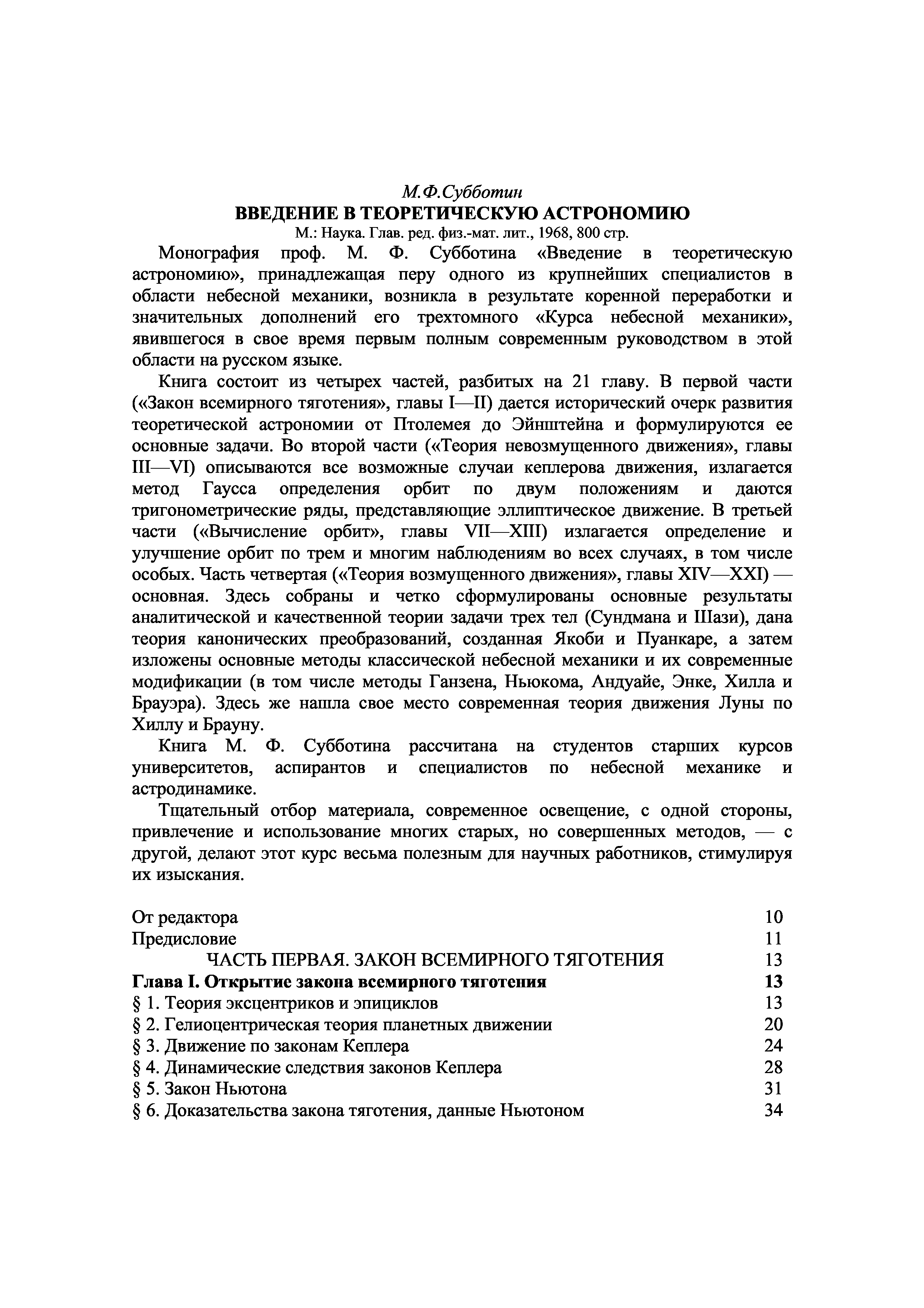 "Введение в теоретическую астрономию" - читать интересную книгу автора (Субботин М.Ф.)