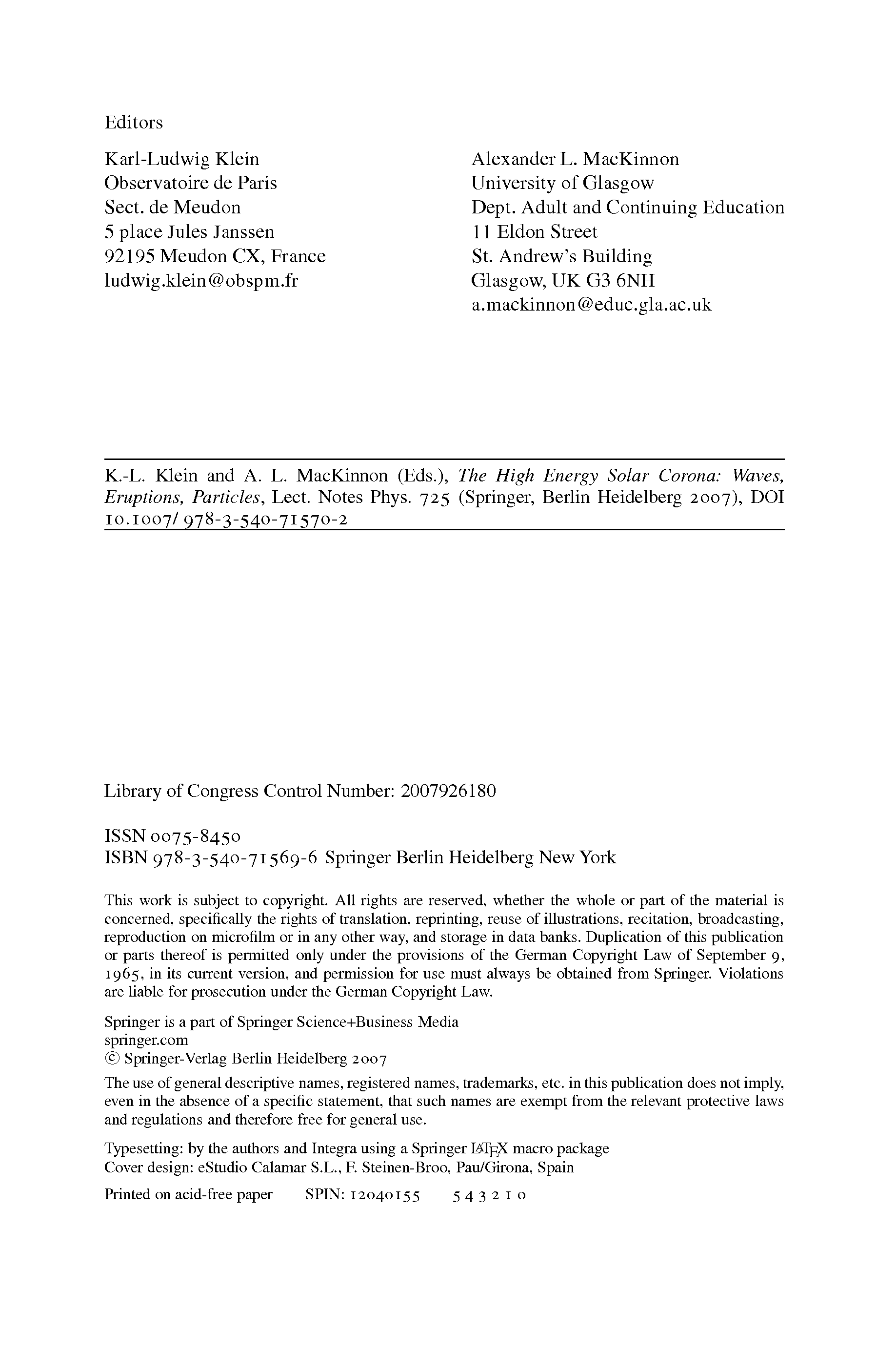 "The High Energy Solar Corona: Waves, Eruptions, Particles" - читать интересную книгу автора (Karl L. Klein, Alexander L. MacKinnon)