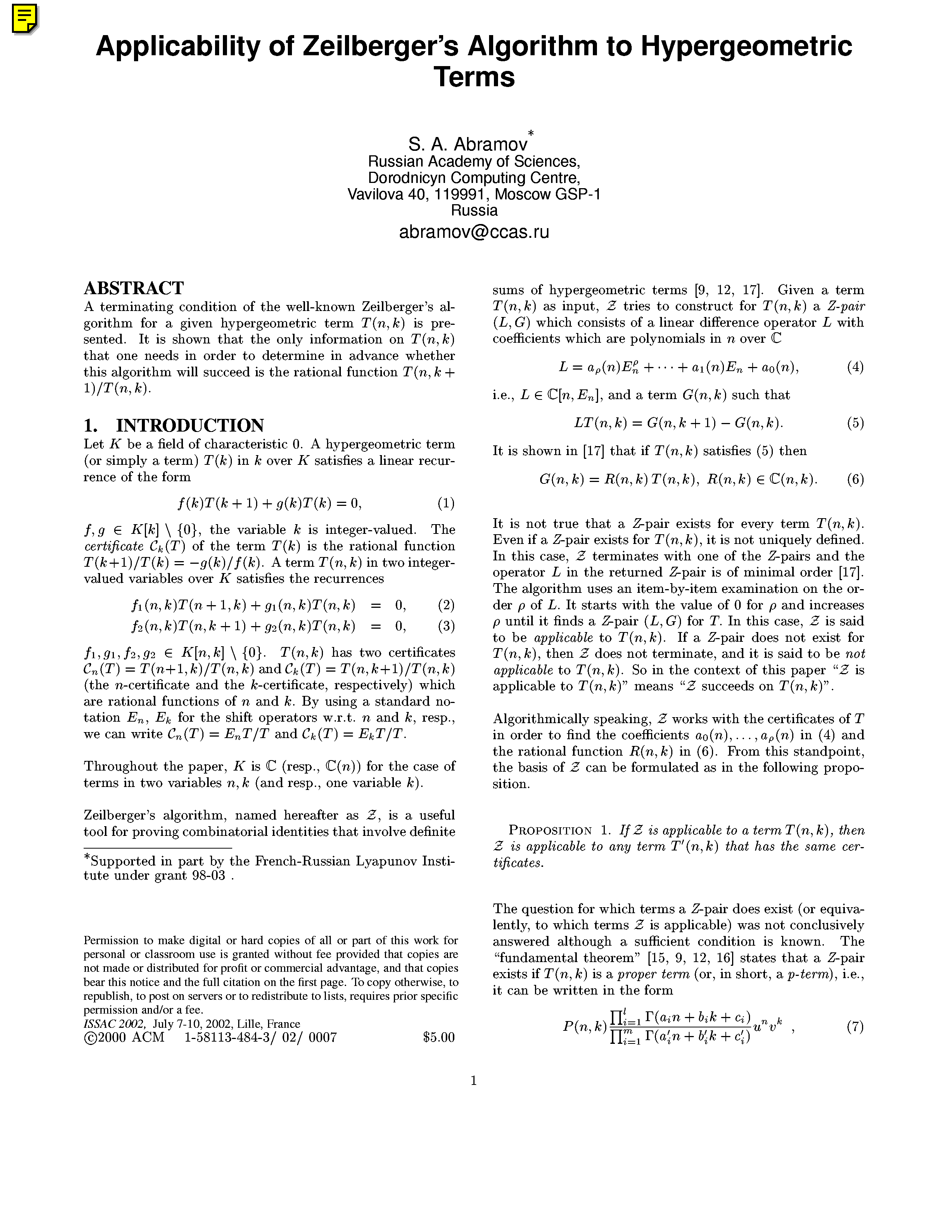 "Proceedings ISSAC (Lille)" - читать интересную книгу автора