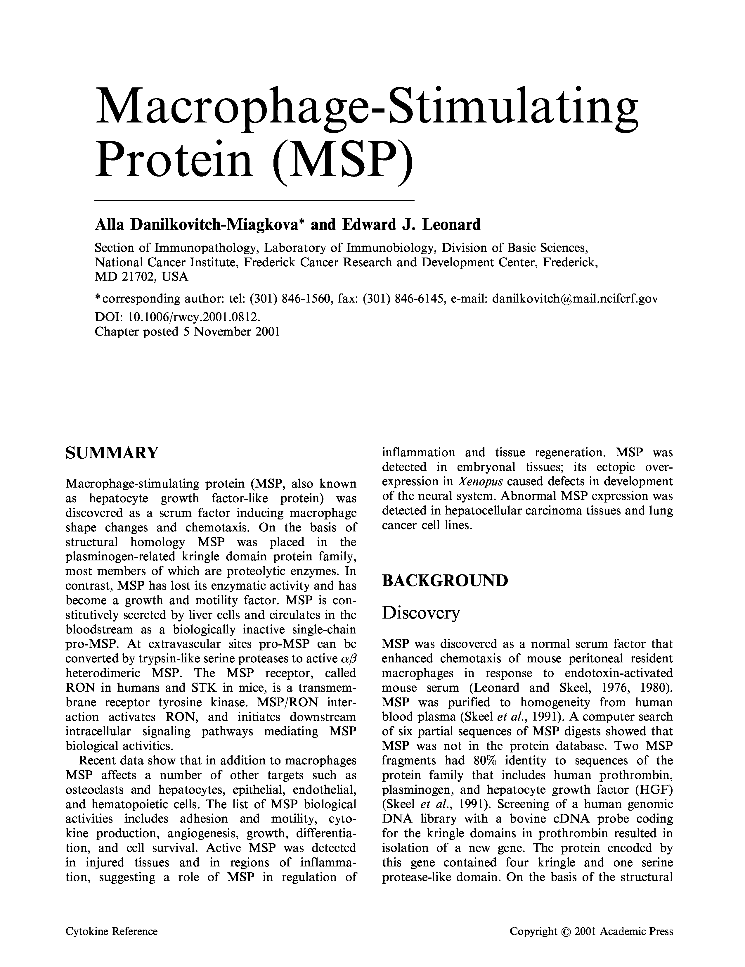 "Macrophage-Stimulating Protein" - читать интересную книгу автора (Danilkovitch-Miagkova A., Leonard E.J.) |