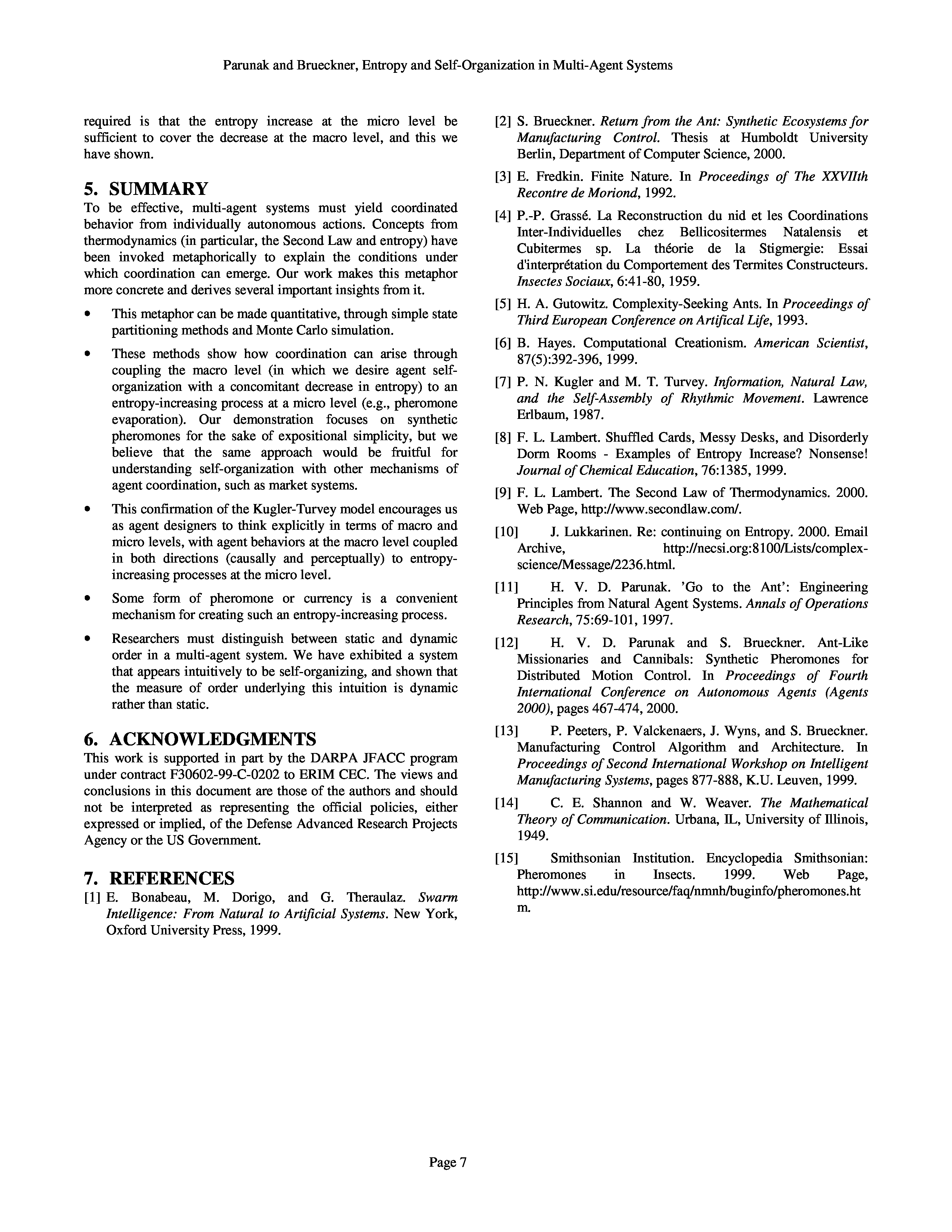 "Entropy And Self-Organization In Multi-Agent Systems" - читать интересную книгу автора (Parunak H.V.D., Brueckner S.) |