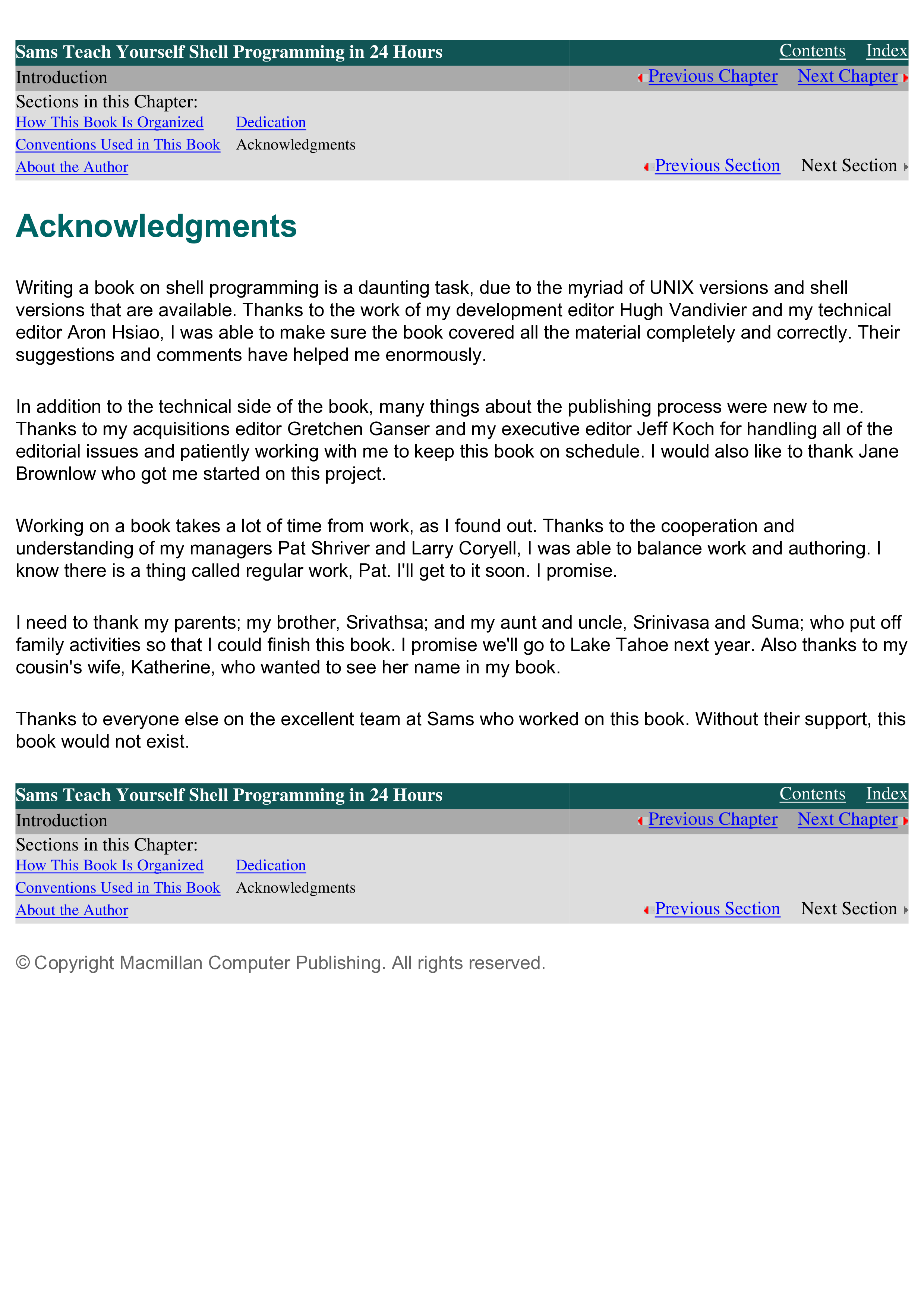 "Sams Teach Yourself Shell Programming in 24 Hours" - читать интересную книгу автора (Sriranga Veeraraghavan) |