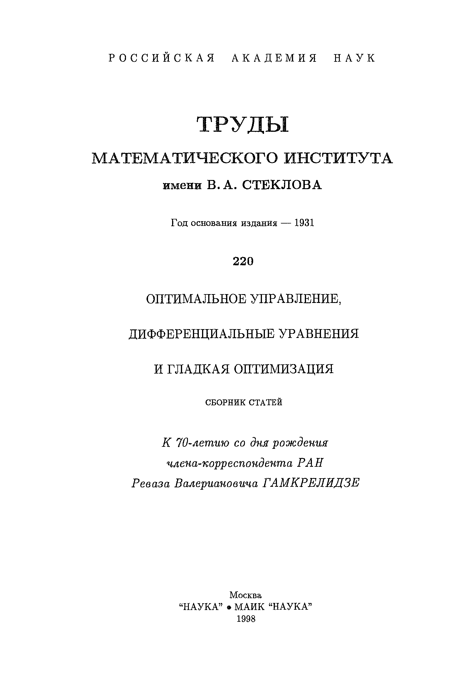 "Труды математического института им. В.А. Стеклова (220). Оптимальное управление, дифференциальные уравнения и гладкая оптимизация" - читать интересную книгу автора (Мищенко Е.В.) |