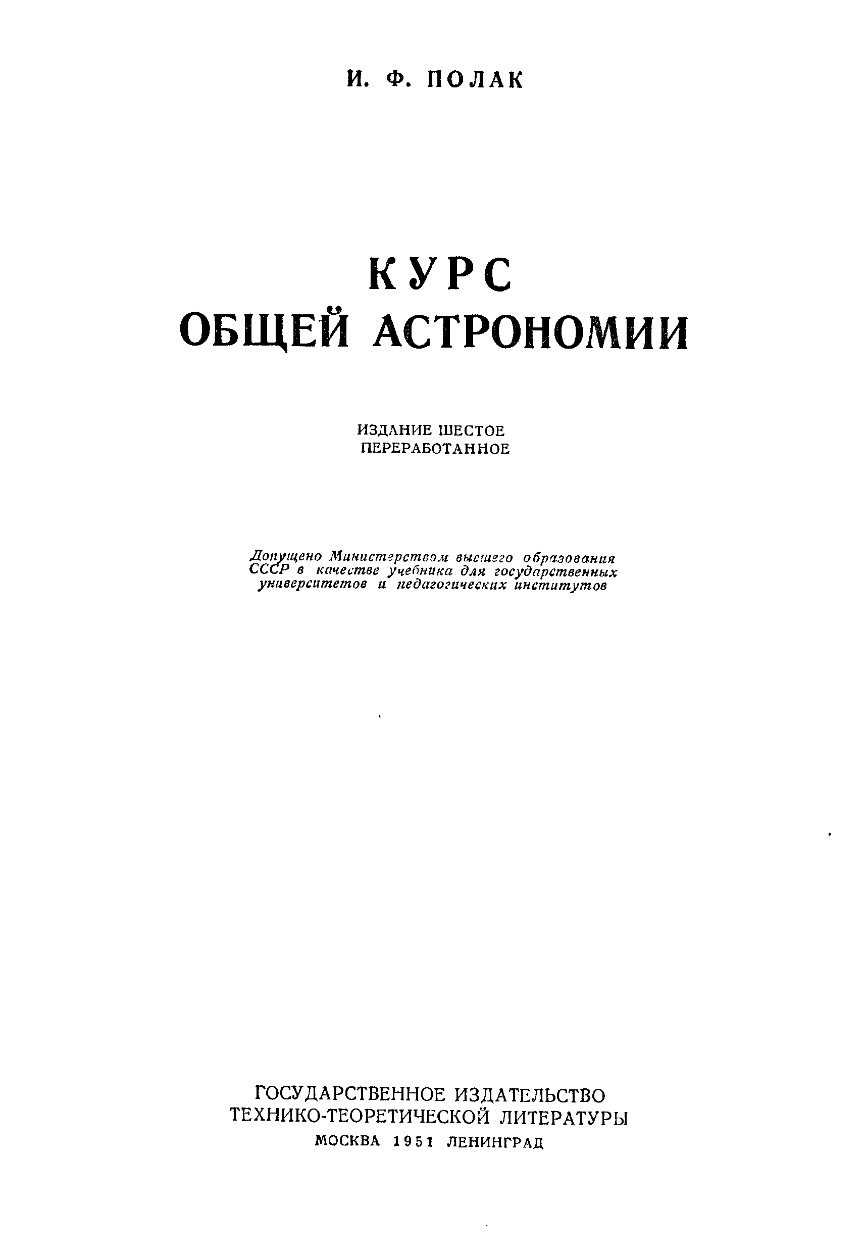 "Курс общей астрономии" - читать интересную книгу автора (Полак Иосиф Федорович)