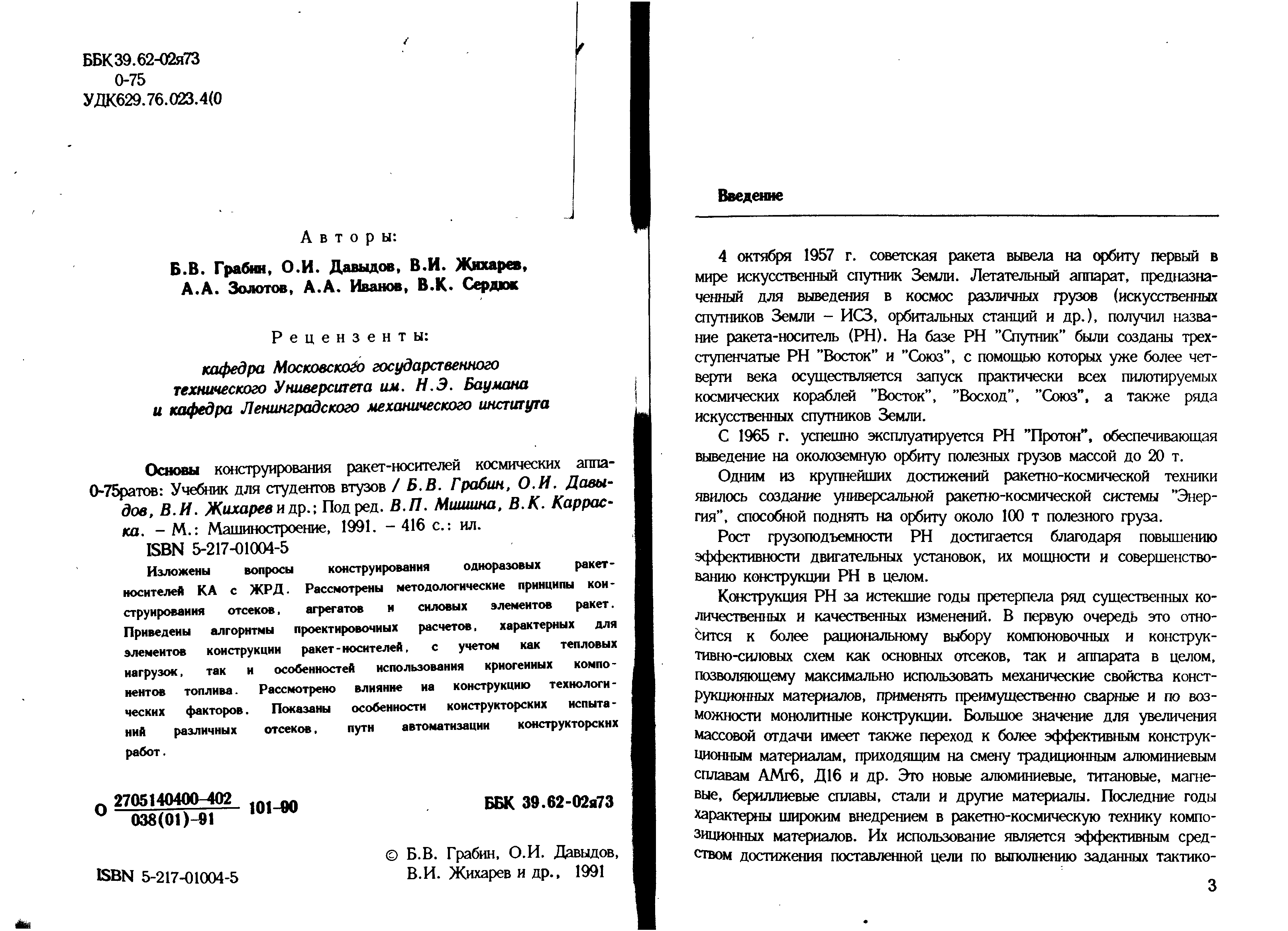 "Основы конструирования ракет-носителей космических аппаратов. Учебник для студентов втузов" - читать интересную книгу автора (Авторы: Б.В.Грабин, О.И.Давыдов, В.И.Жихарев,...) |