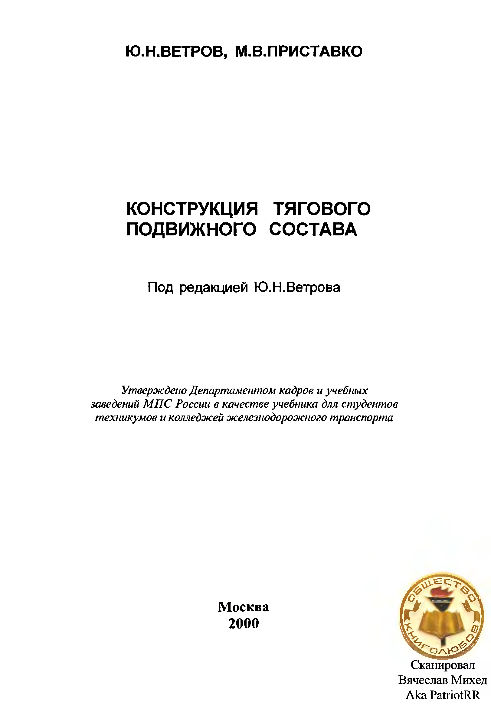 "Конструкция тягового подвижного состава" - читать интересную книгу автора (Ветров Ю.Н., Приставко М.В.) |