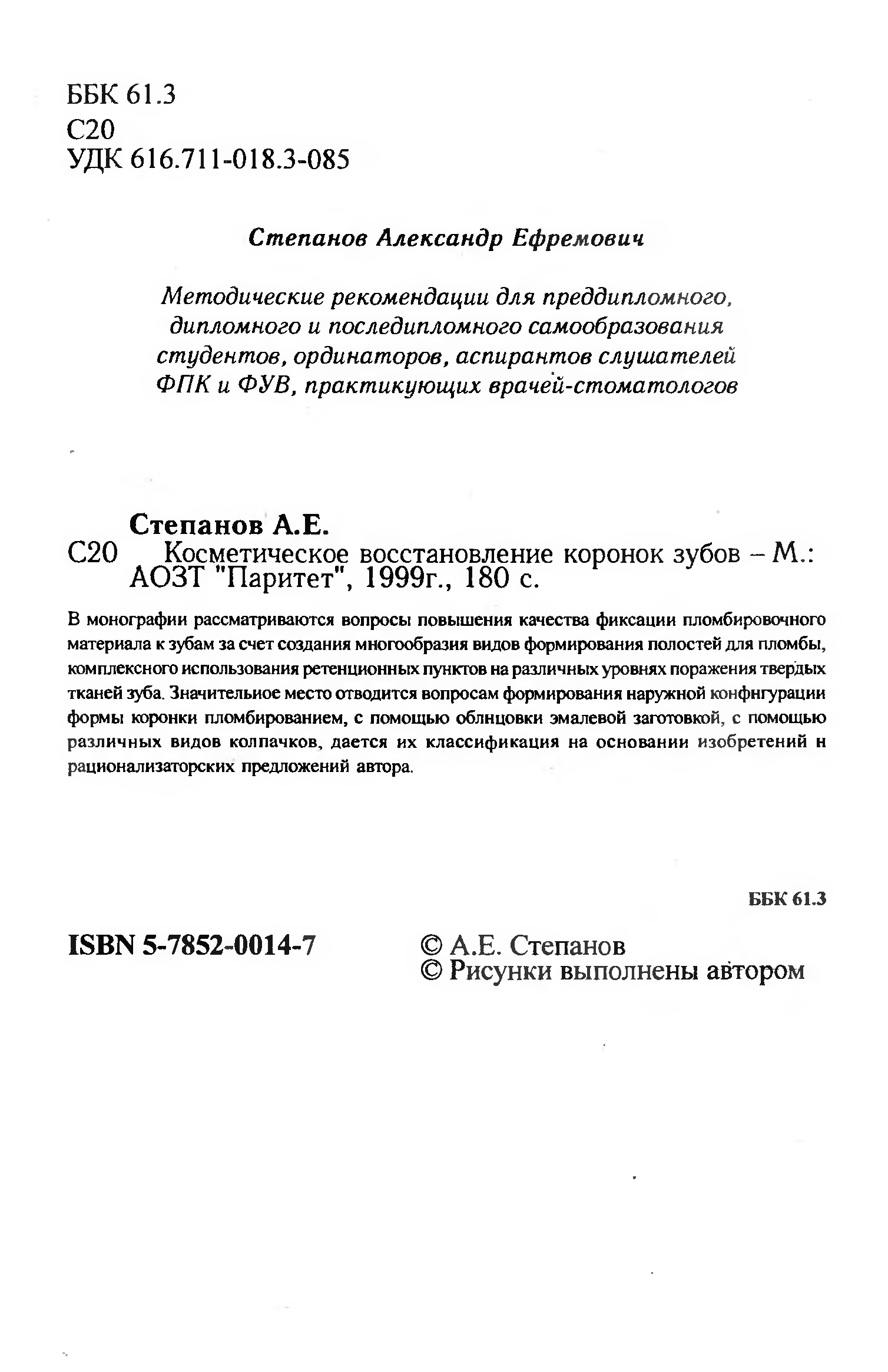 "Косметическое востановление коронок зубов" - читать интересную книгу автора (Степанов А.Е.)