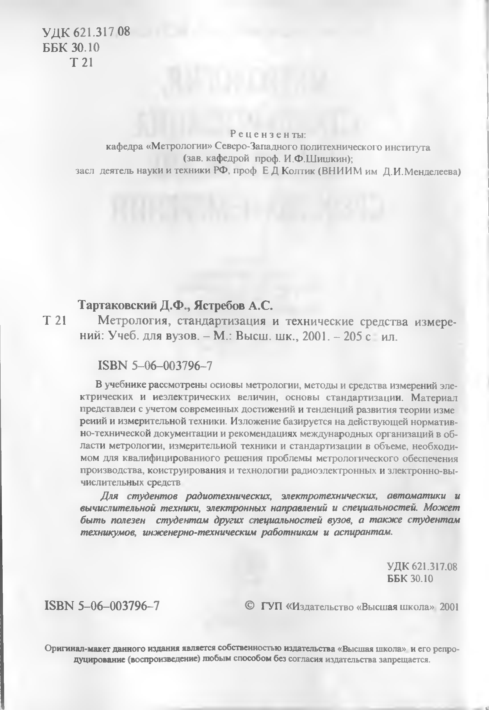 "Метрология, стандартизация и технические средства измерения" - читать интересную книгу автора (Тартаковский Д.Ф., Ястребов А.С.) |
