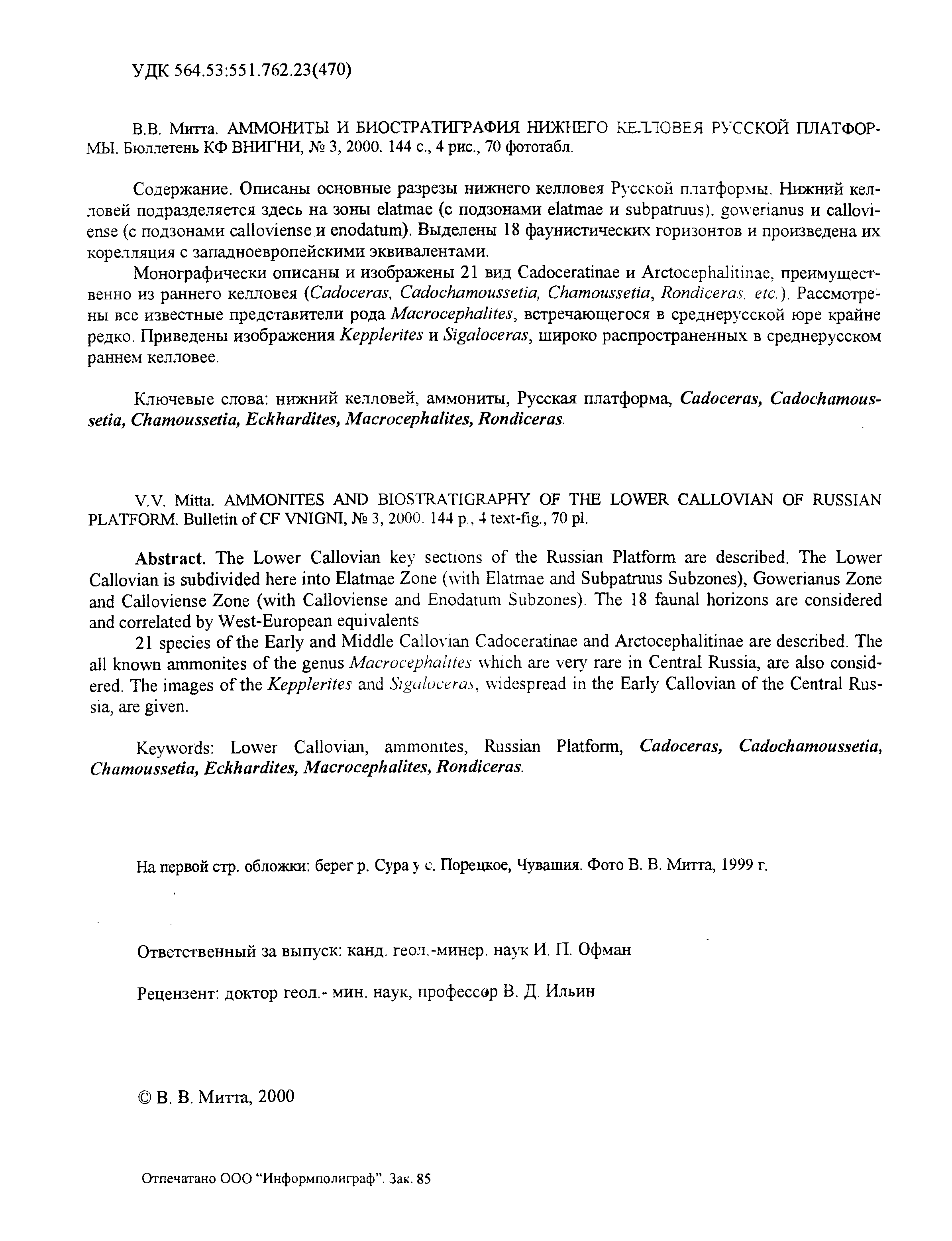 "Аммониты и биостратиграфия нижнего келловея Русской платформы" - читать интересную книгу автора (Митта В.В.) |