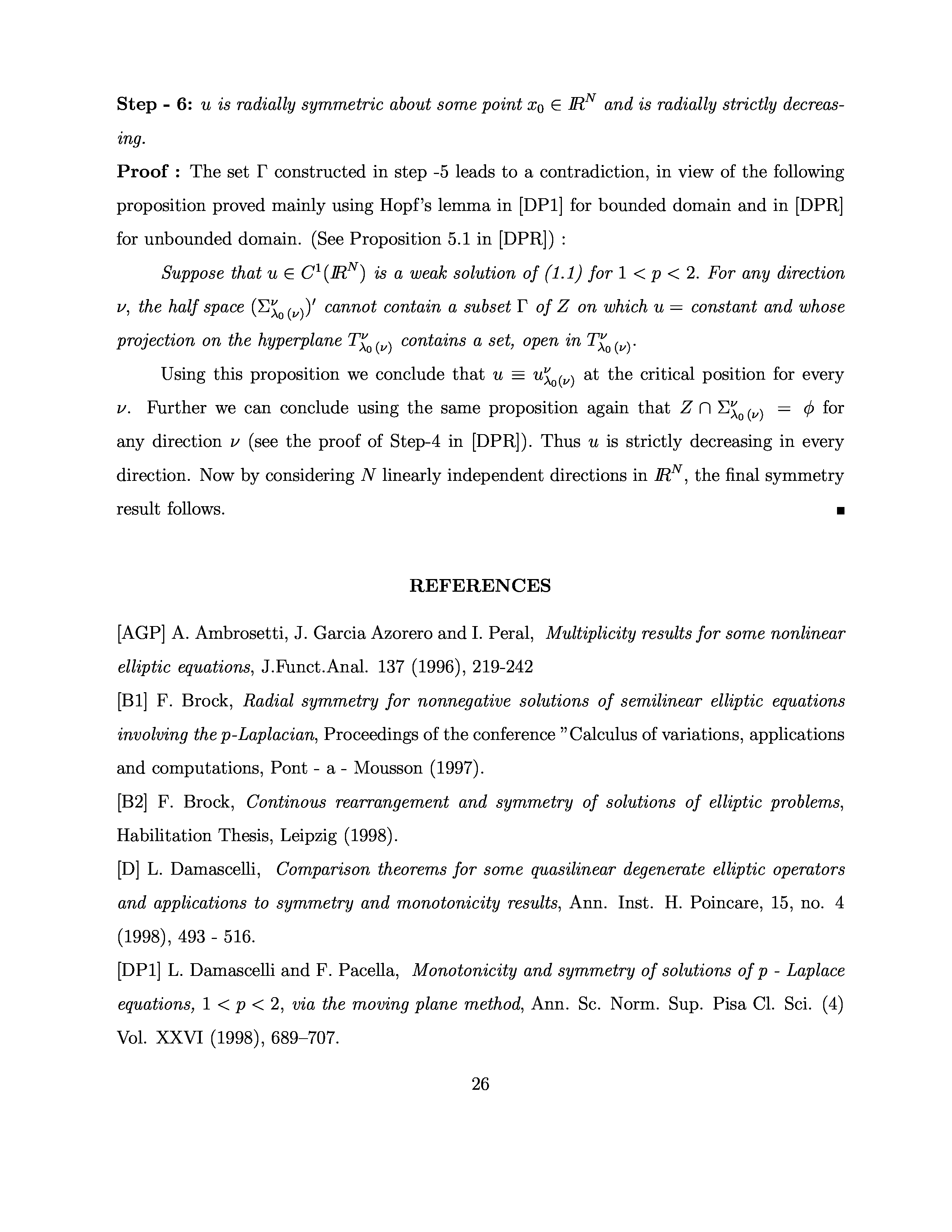 "Symmetry of C^1 solutions of p-Laplace equations in R^N" - читать интересную книгу автора (Damascelli L.)