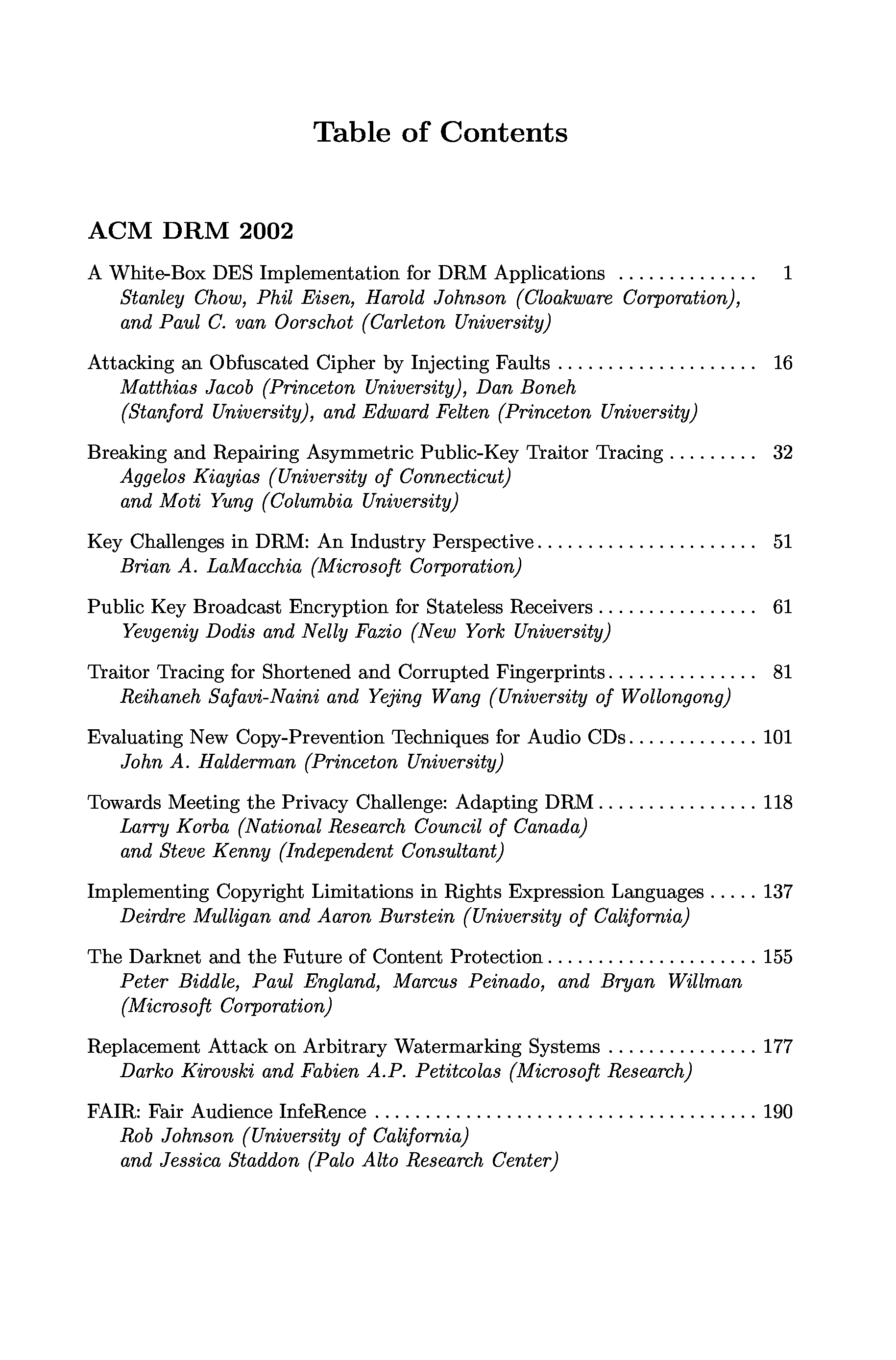 "Security and Privacy in Digital Rights Management" - читать интересную книгу автора (Feigenbaum J. (Ed)) |