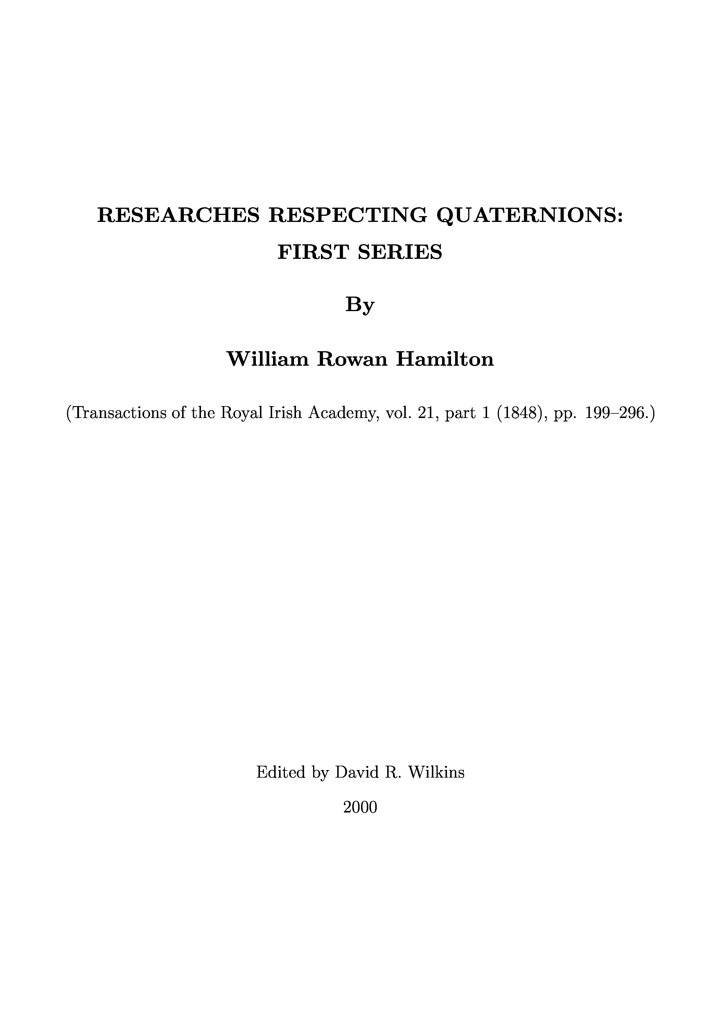 "Researches REspecting Quaternions: First Series" - читать интересную книгу автора (William Rowan Hamilton) |