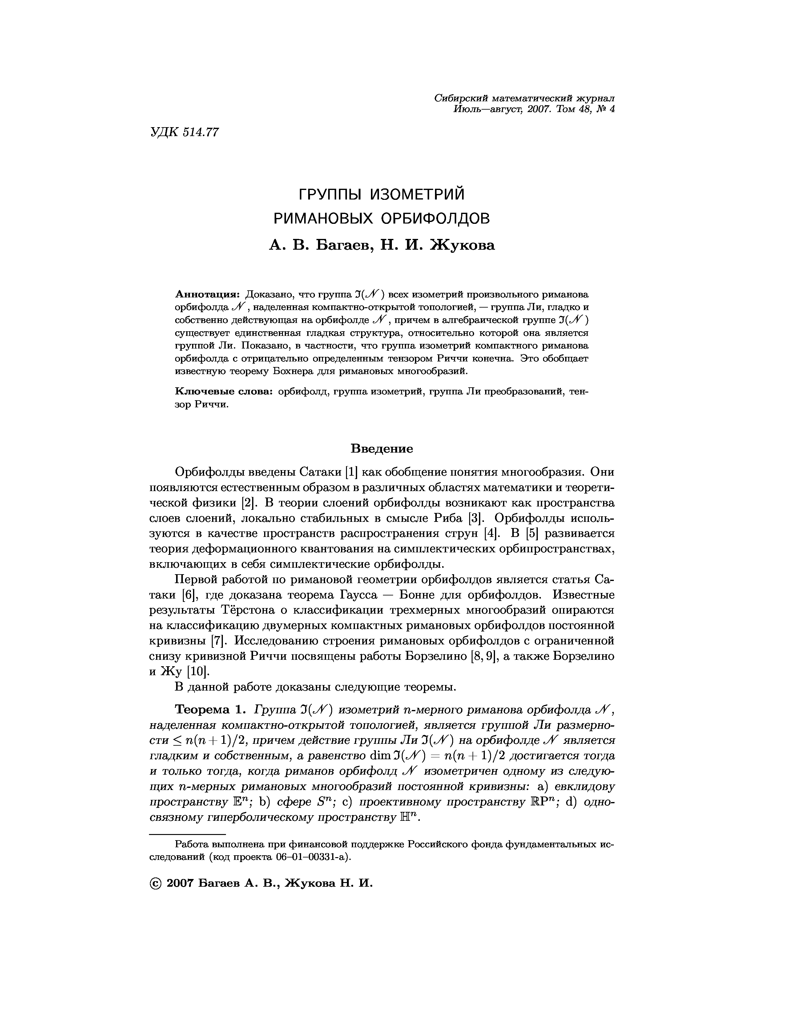 (Багаев А. В., Жукова Н. И.)
