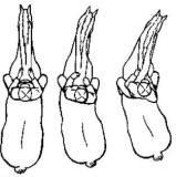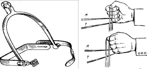 Рис. 24 Надо научиться делать постановление в одну и другую стороны, идя и по прямой, но здесь оно гораздо более незначительное, чем при поворотах. Обычно достаточно того, чтобы видеть задний край глаза лошади, но, идя по прямой, надо следить за тем, чтобы лошадь не откидывала зада в сторону, а ставила задние ноги по следу передних (рис. 25).