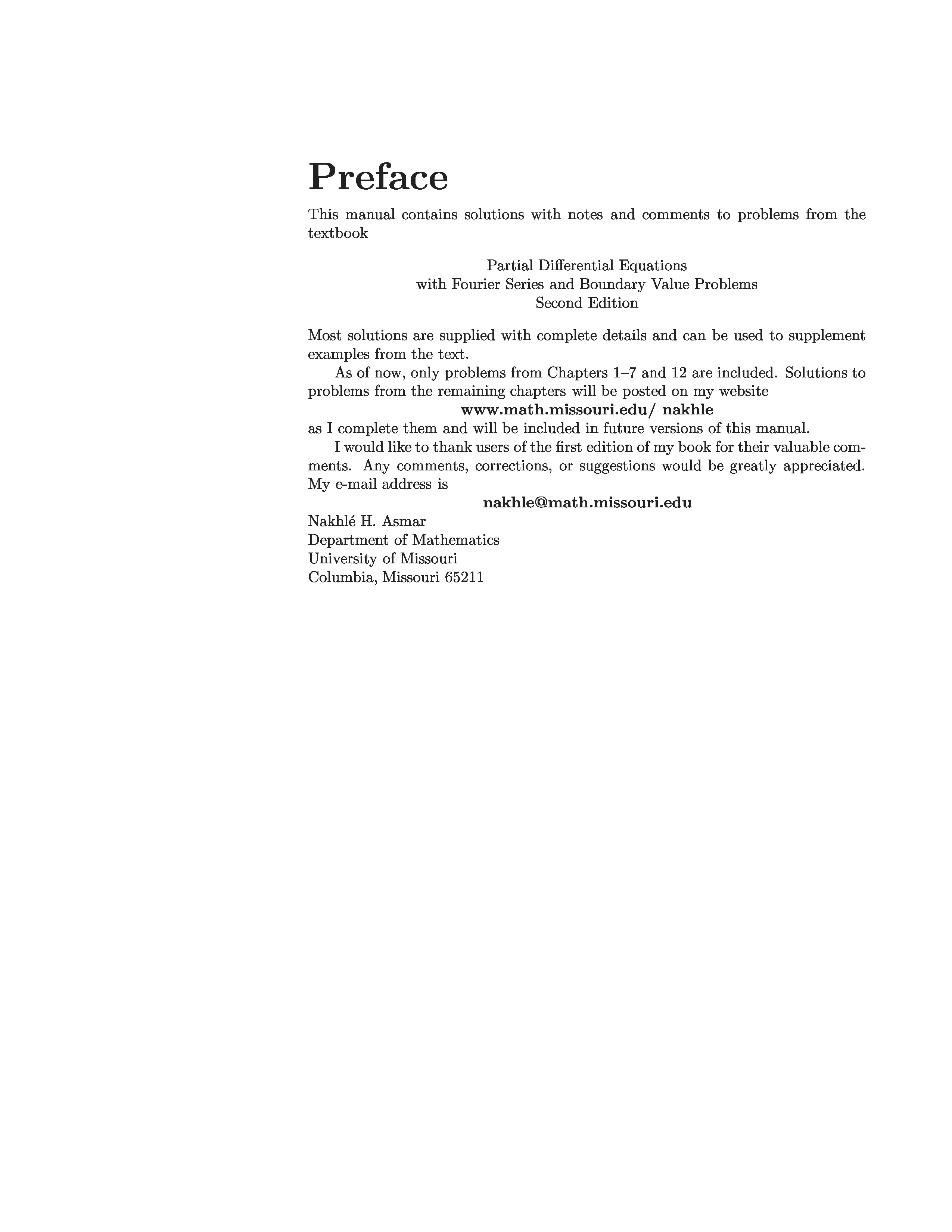 "Partial differential equations with Fourier series and BVP. Student solutions manual" - читать интересную книгу автора (Asmar N.H.) |