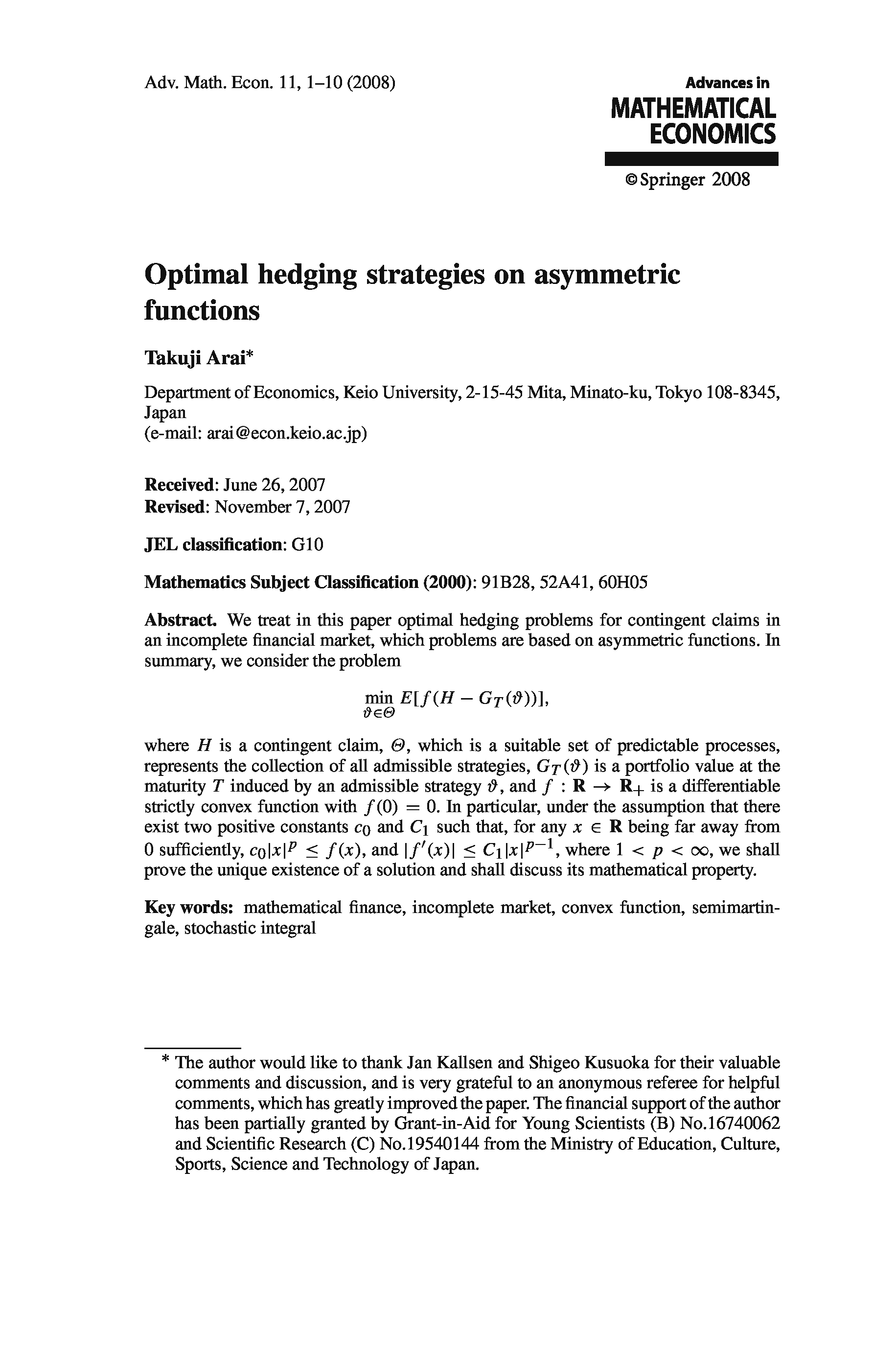 (Shigeo Kusuoka, Akira Yamazaki)