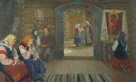 "Крестная сила" - читать интересную книгу автора (Максимов Сергей Васильевич)XXIX. АГРАФЕНА КУПАЛЬНИЦА«Купальницей» св. Аграфена называется потому, что день ее памяти падает как раз на канун Ивана Купалы (23 июня). Впрочем, некоторые обычаи и обряды, связанные с этим днем, позволяют заключить, что св. Аграфена получила эпитет «купальницы» сама по себе, без всякого отношения к Ивану Купале. Так, по всему северу России, и в особенности в Вологодской г., крестьяне заготовляют в этот день банные веники на целый год. Для этого бабы и девки, после обеда, запрягают лошадь и уезжают в лес ломать молодые березовые ветви. Иногда, впрочем, веники делаются из различных пород лиственных деревьев и растений, так что в каждый веник входит по ветке: от березы, ольхи, черемухи, ивы, липы, смородины, калины, рябины, и по цветку разных сортов. Это уже, так сказать, ритуальные веники: одним из них парятся в этот день в бане, другими обряжают недавно отелившихся коров, третьи, наконец, перебрасывают через головы или бросают на крыши бани, с целью узнать будущее (если веник упадет вершиной к погосту, то бросающий умрет, а если не вершиной, то останется жив). Как и на Ивана Травника, в день Аграфены Купальницы лихие мужики и бабы, в глухую полночь, снимают с себя рубахи и до утренней зари роют коренья или ищут в заветных местах кладов. А знахари, ложась спать, непременно читают самодельные молитвы, приуроченные к этому дню, как к кануну Ивана Купалы. Вот образец таких молитв, записанных в Тамбовской губ.: «Лягу я помолясь, встану я перекрестясь, умоюсь иорданскою водою, утрусь духо-верною травою (духовною, или духоверною травою называется лен и конопля), пойду на восточную сторону. На восточной стороне стоит соборная церковь, войду я в эту церковь, Богу помолюсь, Ангелу доложусь, Ангел донесет Саваохву, Саваохв донесет Христу, Царю Небесному». В других молитвах смысла еще меньше, хотя попадаются между ними и такие, которые, по языку, несколько напоминают церковные возношения: «Буде верой ли раб Божий молиться, — говорится в одной такой молитве, — о грехах ли ты душа каешься, то душу твою я облачающе, душу твою я навещу и дом твой просвещу».