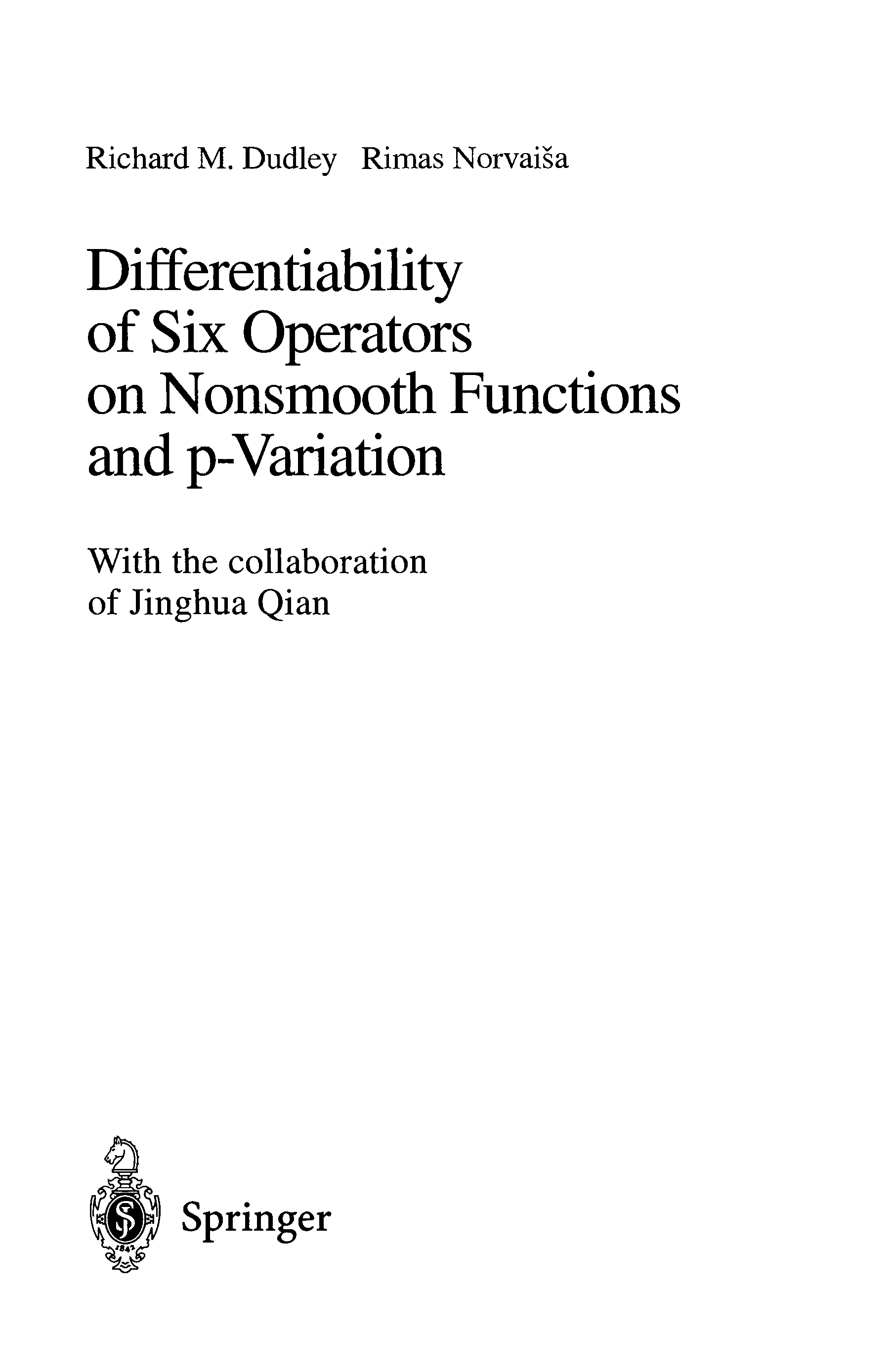 "Differentiability of Six Operators on Nonsmooth Functions and p-variation" - читать интересную книгу автора (R. M. Dudley, R. Norvaia, J. Qian) |